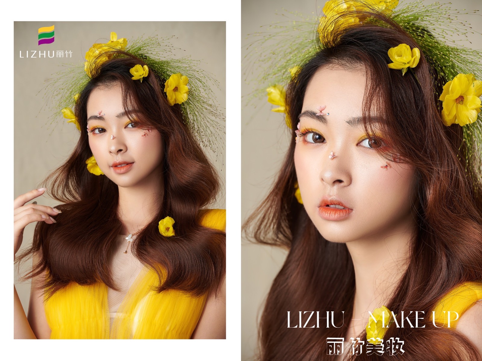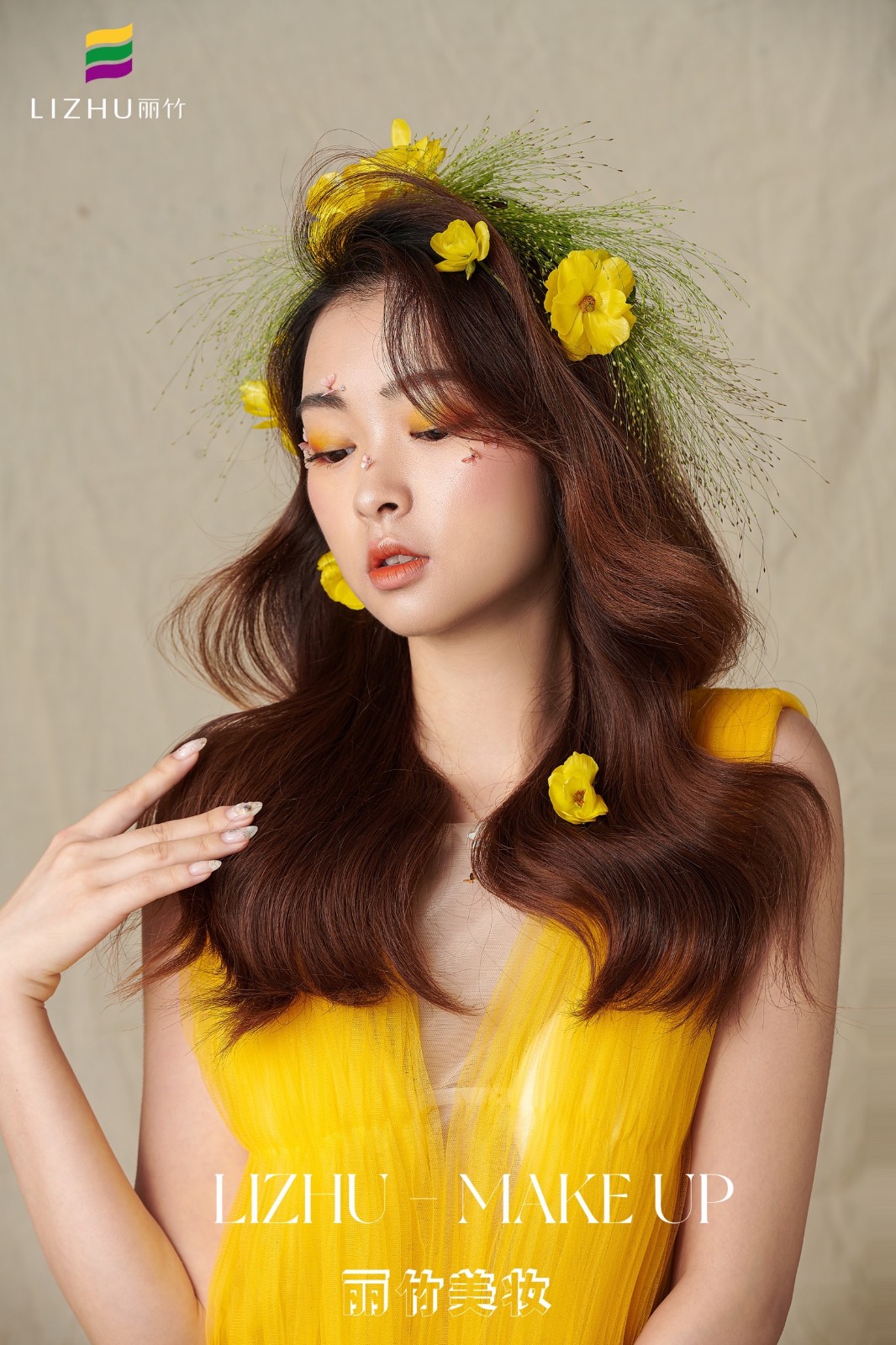 麗竹化妝學(xué)校作品---輕氧花漾披發(fā)造型:清新自然嫩膚柔細(xì),發(fā)絲宛若三月春風(fēng),繁華似錦帶來(lái)神秘曼妙,清透靈動(dòng)述說(shuō)少女心事。