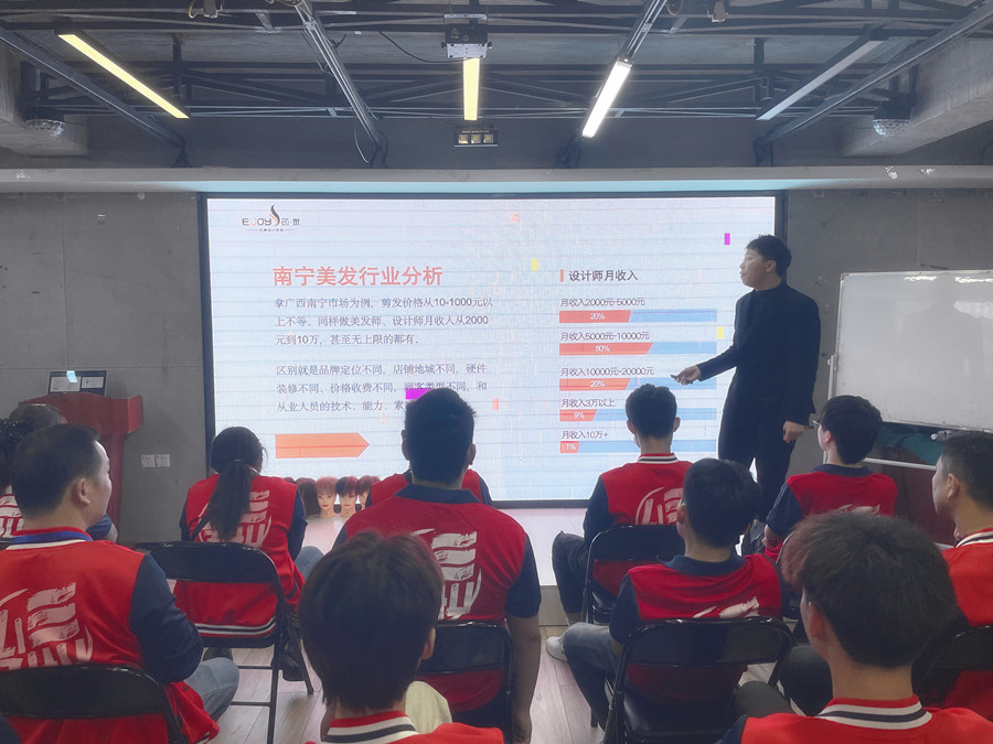 宣講會(huì)上,梁經(jīng)理在現(xiàn)場(chǎng)不僅和同學(xué)們討論了南寧美發(fā)專業(yè)培訓(xùn)學(xué)校學(xué)習(xí)技術(shù)的好處以及必要性,南寧美發(fā)行業(yè)的市場(chǎng)分析,針對(duì)學(xué)員們提出的疑問,如南寧美發(fā)設(shè)計(jì)師不同級(jí)別的收入情況,南寧常見美發(fā)店的分類及項(xiàng)目介紹,南寧有規(guī)模的美發(fā)店人員配置,南寧美發(fā)從業(yè)人員從基層開始的晉升機(jī)制等,關(guān)乎美發(fā)新人如何成長(zhǎng)的重要內(nèi)容都做出了詳細(xì)解釋。