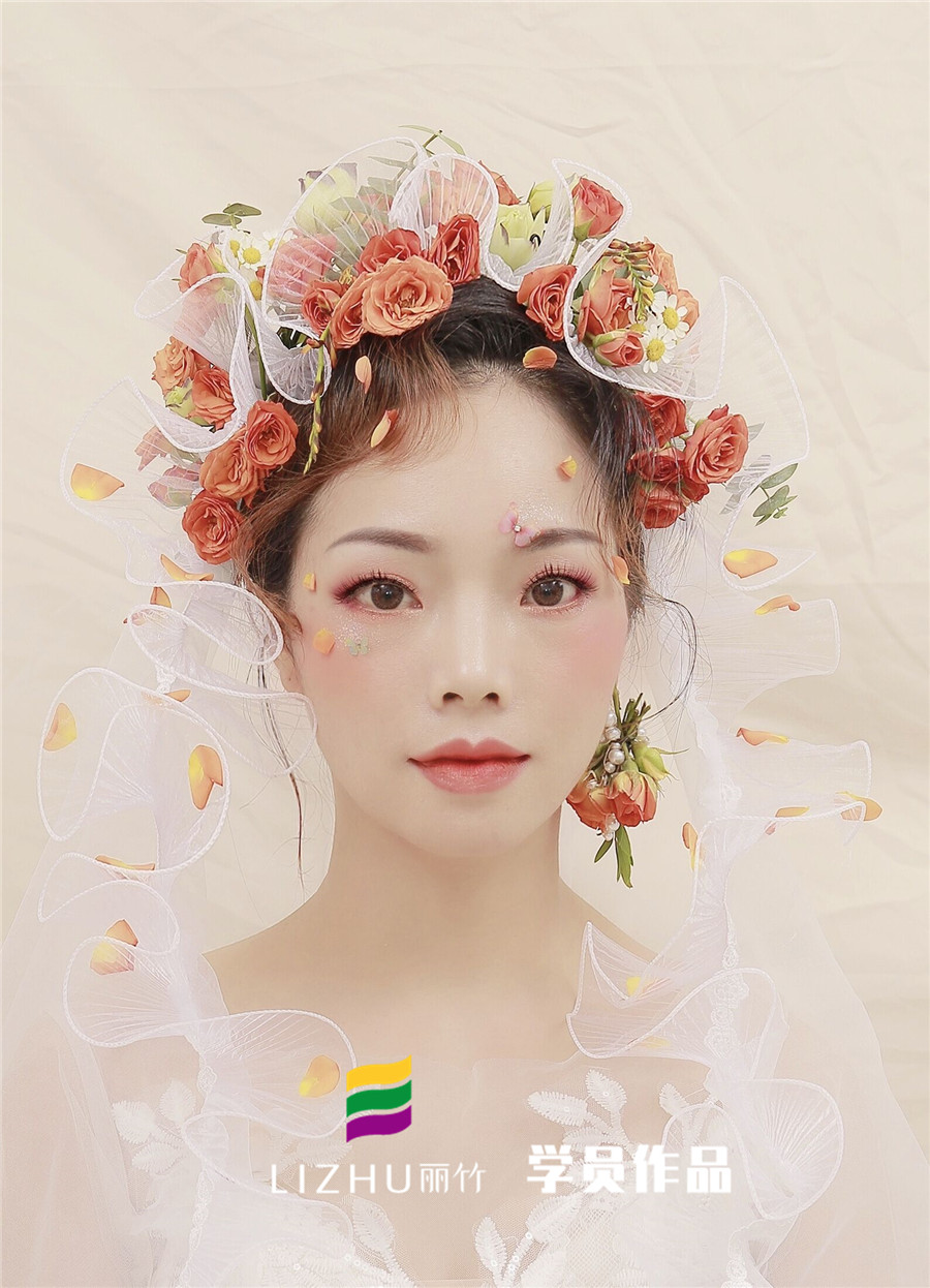 南寧化妝培訓學校分享:新娘時尚造型,鮮花點綴,,猶如精靈一般,優(yōu)雅溫婉,水靈蘊秀,惹人憐愛。讓人一見驚艷,再見傾心!