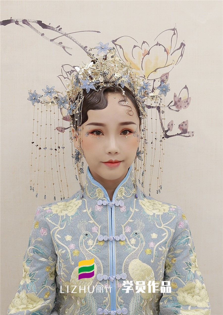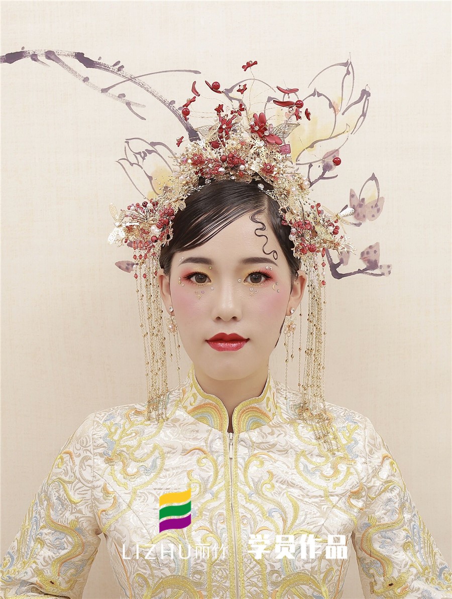 南寧化妝學(xué)校分享:裊娜少女羞,歲月無(wú)憂愁,中式新娘驚艷的一抹刺繡,精致典雅,演繹中國(guó)風(fēng),優(yōu)雅的盤發(fā)搭配精致的發(fā)飾,一身華服,正是芙蓉不及美人妝。