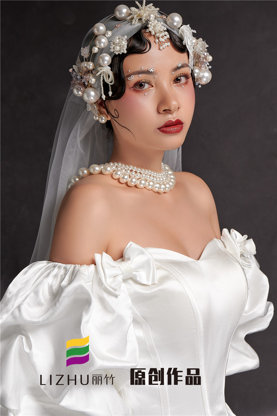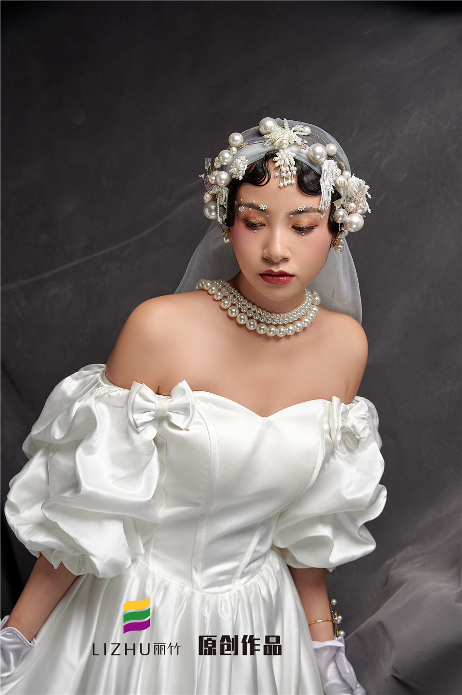 廣西排名前十彩妝學(xué)校分享:麗竹學(xué)校彩妝作品---輕奢復(fù)古造型:潔白充滿設(shè)計(jì)感的禮服,珍珠點(diǎn)綴,星光點(diǎn)點(diǎn)的,是夢幻與現(xiàn)實(shí)的交替。