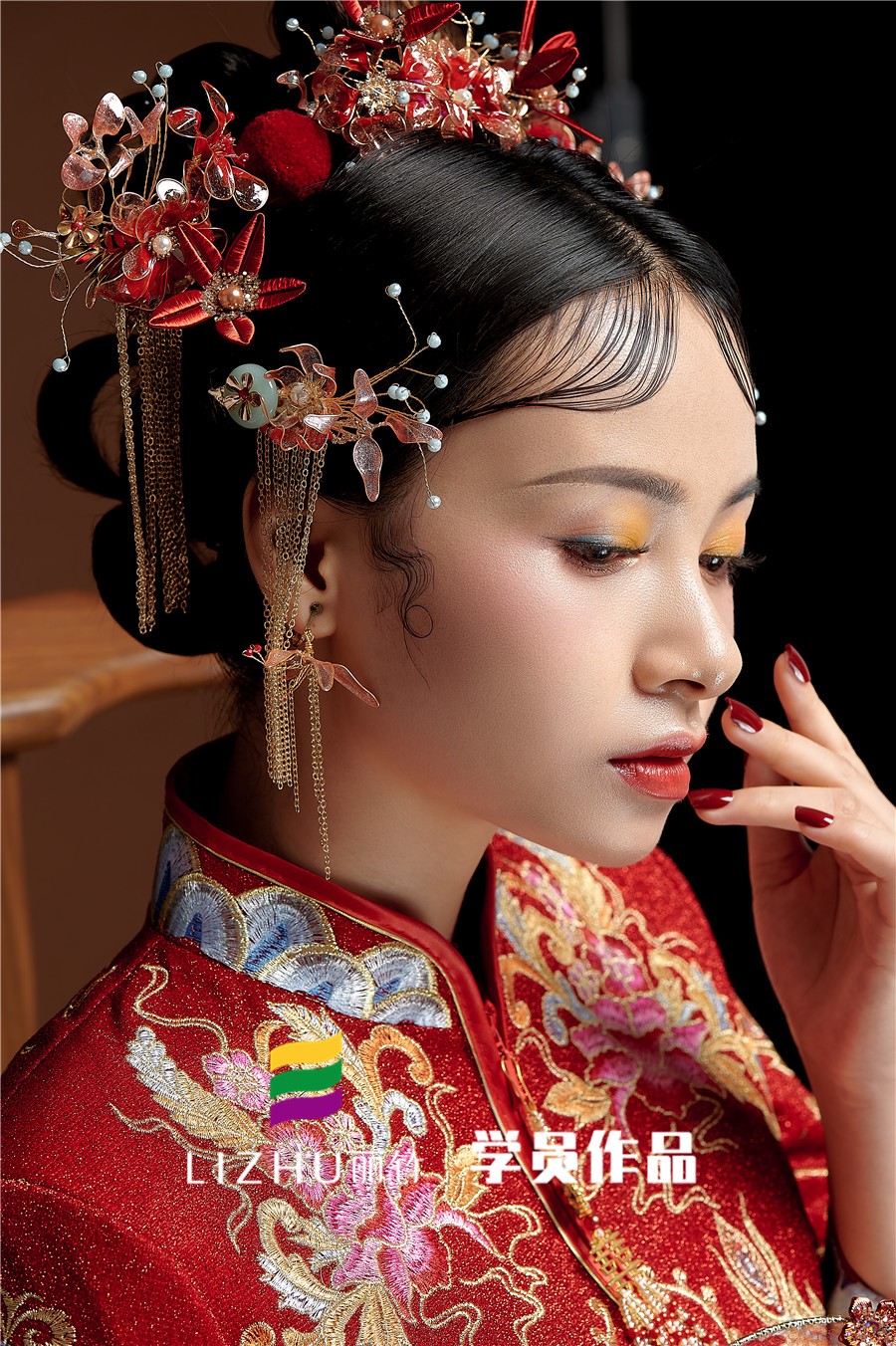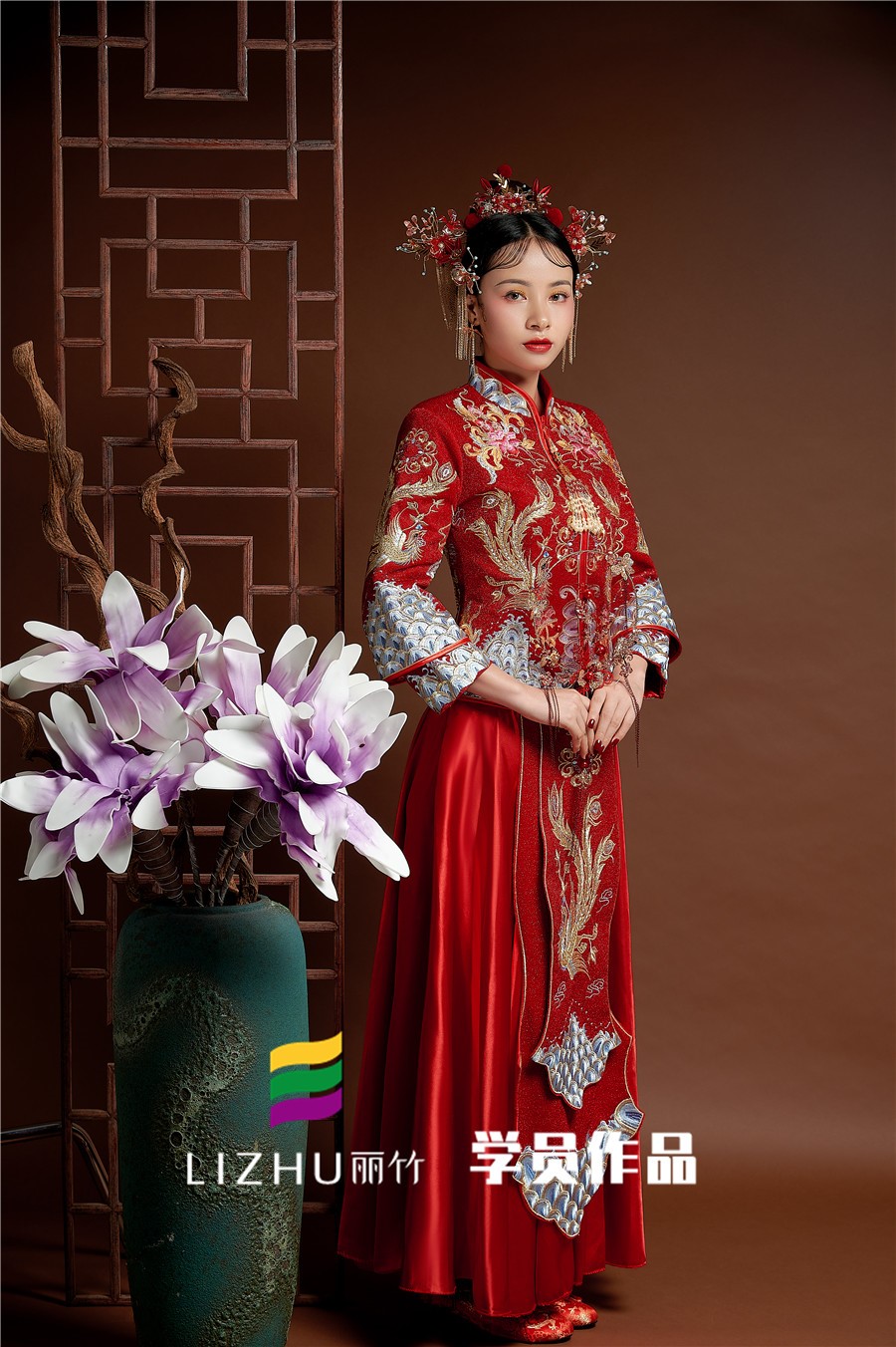 廣西排行前十彩妝學(xué)校作品分享:繁花似錦的中式禮服,針線交替的優(yōu)雅色澤,艷麗不凡的高貴氣質(zhì),精致溫婉的妝容造型,驚鴻一瞥里絕代芳華。
