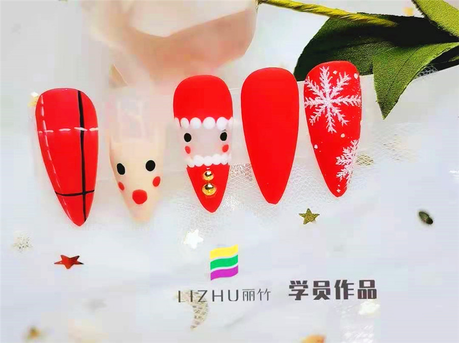 南寧美甲培訓學校分享:“叮叮當,叮叮當, 鈴兒響叮當”伴隨著歌曲,圣誕節(jié)也即將到來,小仙女們的美甲也是時候換上一個與節(jié)日相符的美甲款式了。下面,就看看南寧排行前十美甲學校(麗竹美甲學校)學員們創(chuàng)作的圣誕美甲作品吧!