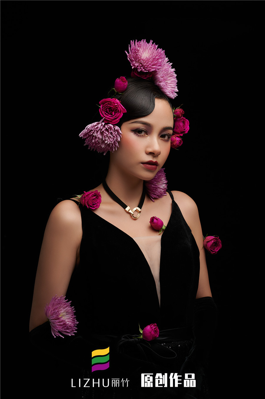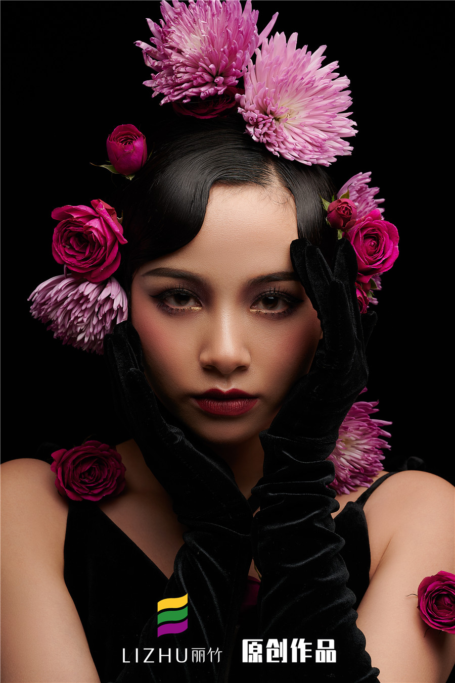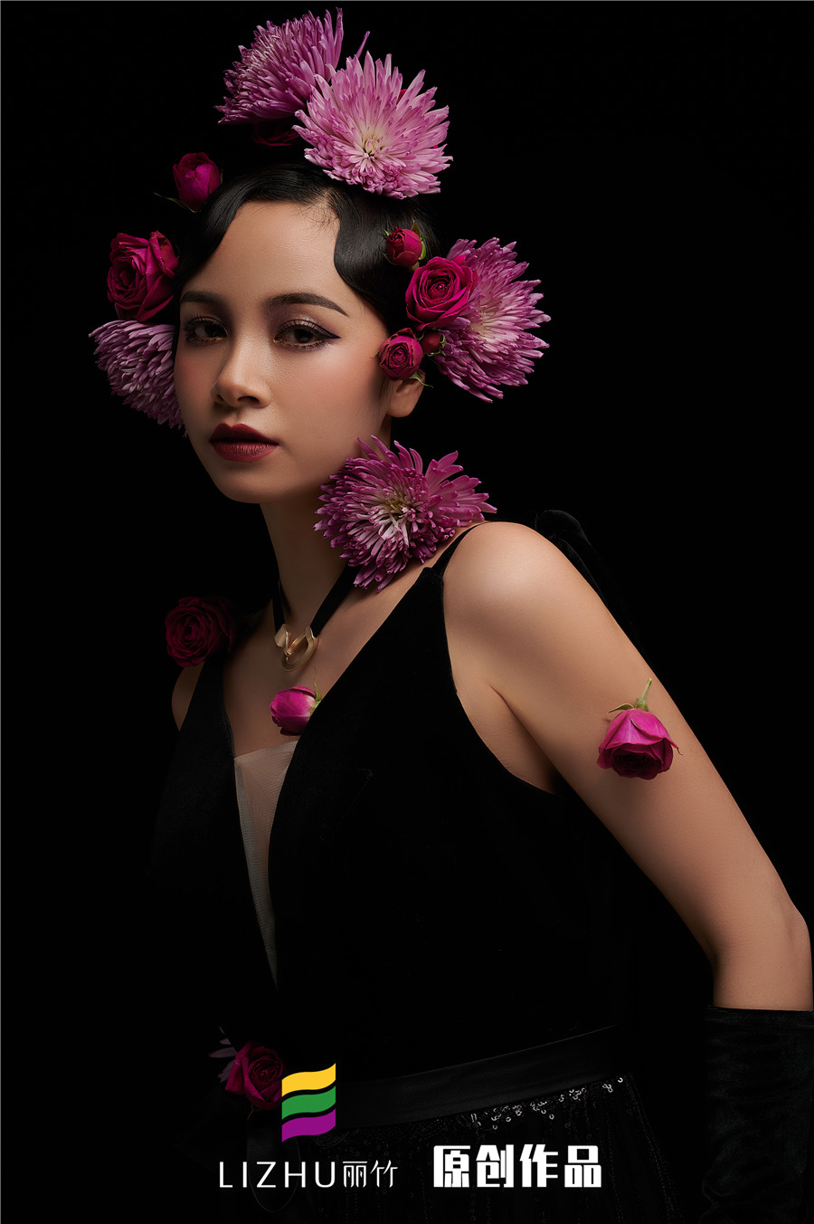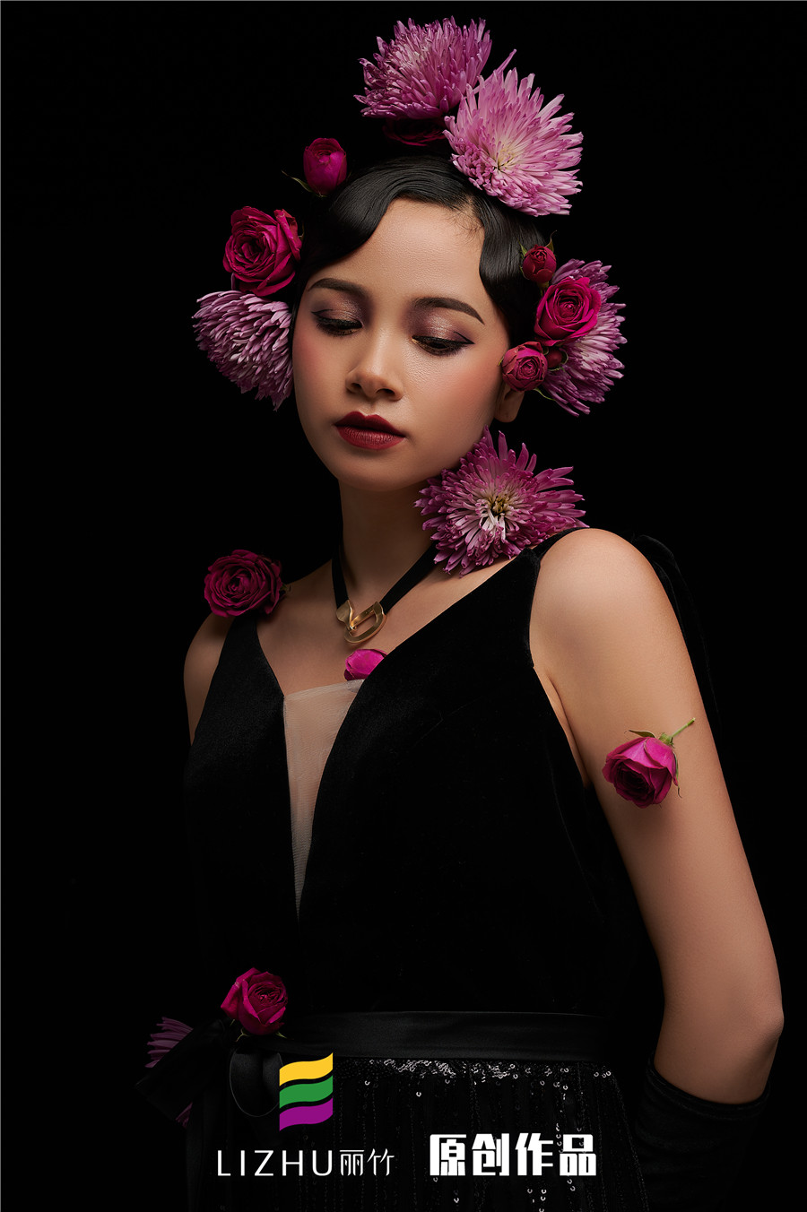 麗竹彩妝作品:復(fù)古鮮花新娘造型