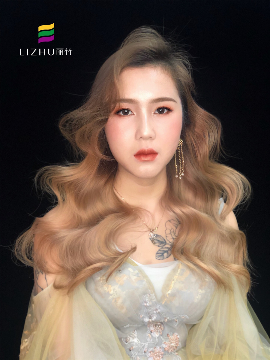 南寧彩妝培訓(xùn)機(jī)構(gòu)(麗竹化妝學(xué)校作品):人魚姬色系點綴的眼影,配以質(zhì)感的波浪卷發(fā)。穿上金線復(fù)古刺繡禮服,平淡低調(diào)中帶著小奢靡,彰顯細(xì)節(jié)與質(zhì)感相互媲美,點亮詮釋出時尚的個性。