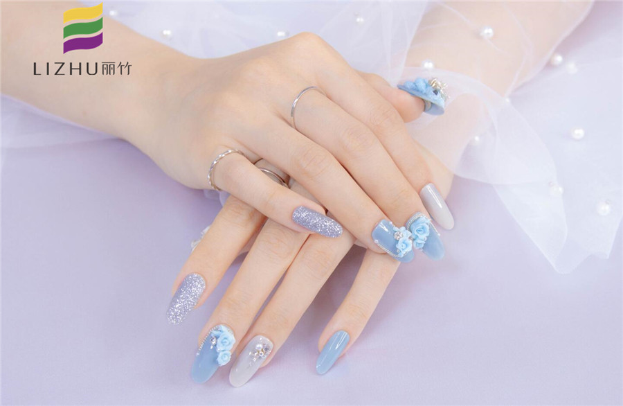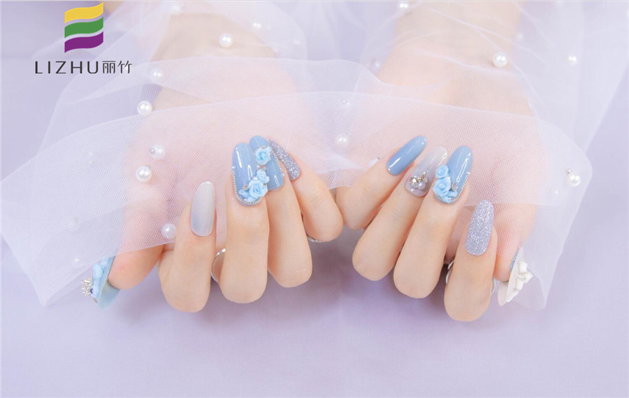 廣西正規(guī)美甲培訓(麗竹美甲學校)新一期雕花美甲作品,既有玫瑰的浪漫,也有卡通熊的童趣,還有蝴蝶結(jié)的甜美,水湖藍的主色調(diào)加上銀色閃粉的點綴,讓整個美甲作品變得格外清新洋氣!