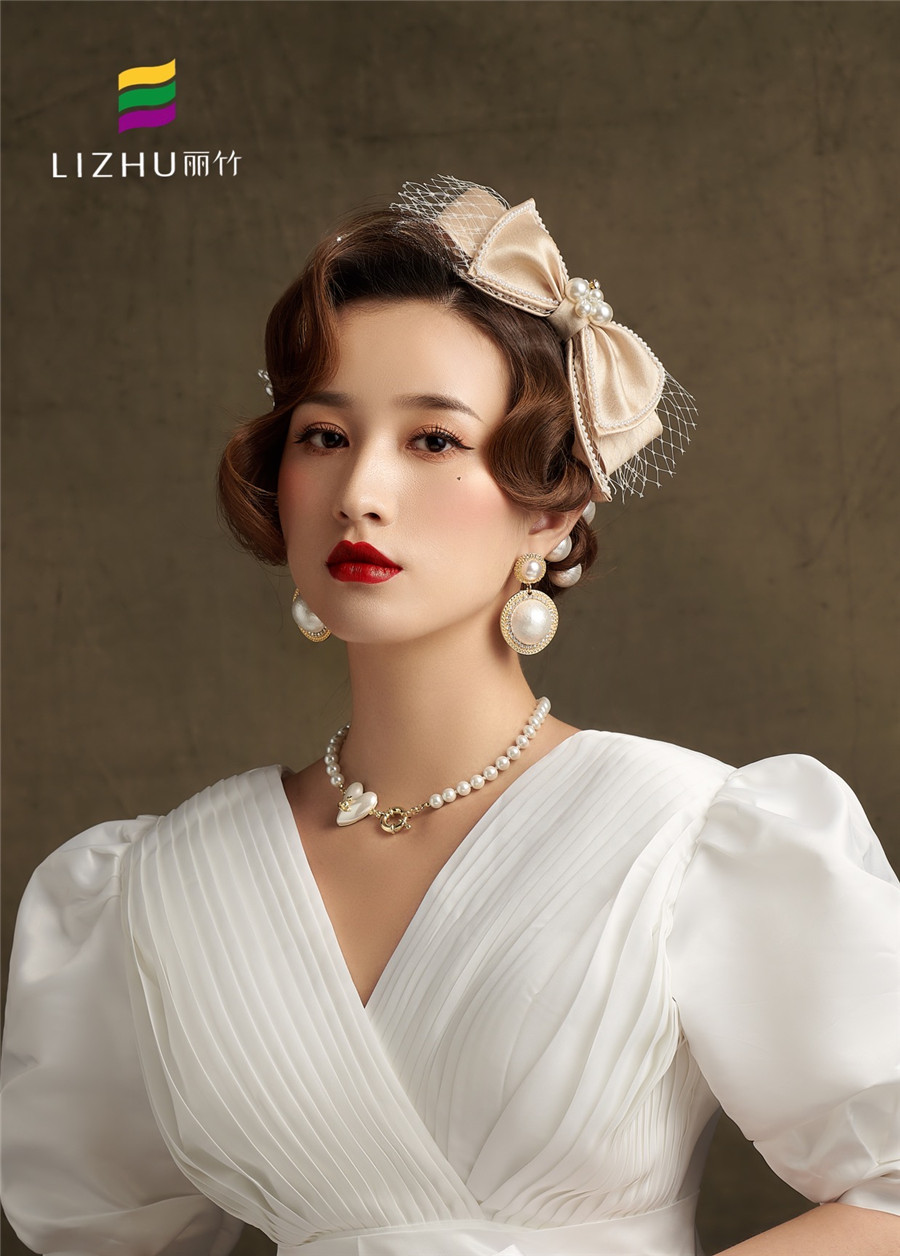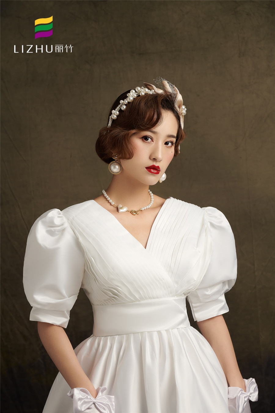 南寧化妝培訓學校作品---輕復古新娘系列:時尚優(yōu)雅盤發(fā),大氣動人麗人妝,緞面氣質(zhì)婚紗,純潔優(yōu)雅。