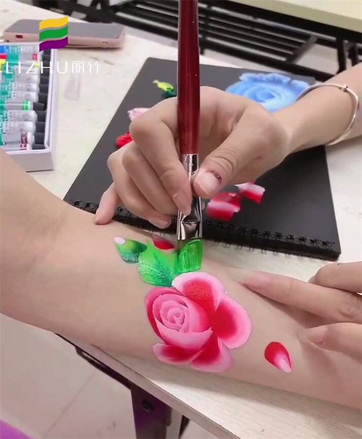 南寧美甲培訓(xùn)學(xué)校分享:人體3D彩繪,又稱(chēng)紋身彩繪,即在光滑的皮膚上,用顏料繪出一件美麗的華服,具有特殊的美感。這種方式對(duì)于那些怕疼,但是又想紋身的小可愛(ài)來(lái)說(shuō)很適用哦!下面,就來(lái)看看南寧專(zhuān)業(yè)美甲學(xué)校(麗竹美甲學(xué)校)老師在手臂上繪制的3D彩繪玫瑰花紋身作品吧!