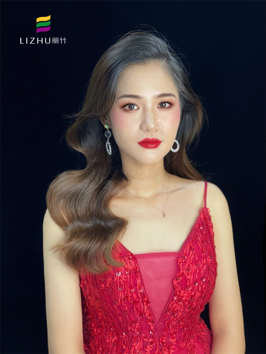 南寧化妝培訓(xùn)(麗竹彩妝培訓(xùn)學(xué)校)作品:簡(jiǎn)約禮服造型:粉橘色溫柔的妝容,優(yōu)雅婉約的韓式披發(fā),搭配大氣紅色珠片禮服,散發(fā)簡(jiǎn)約的美。