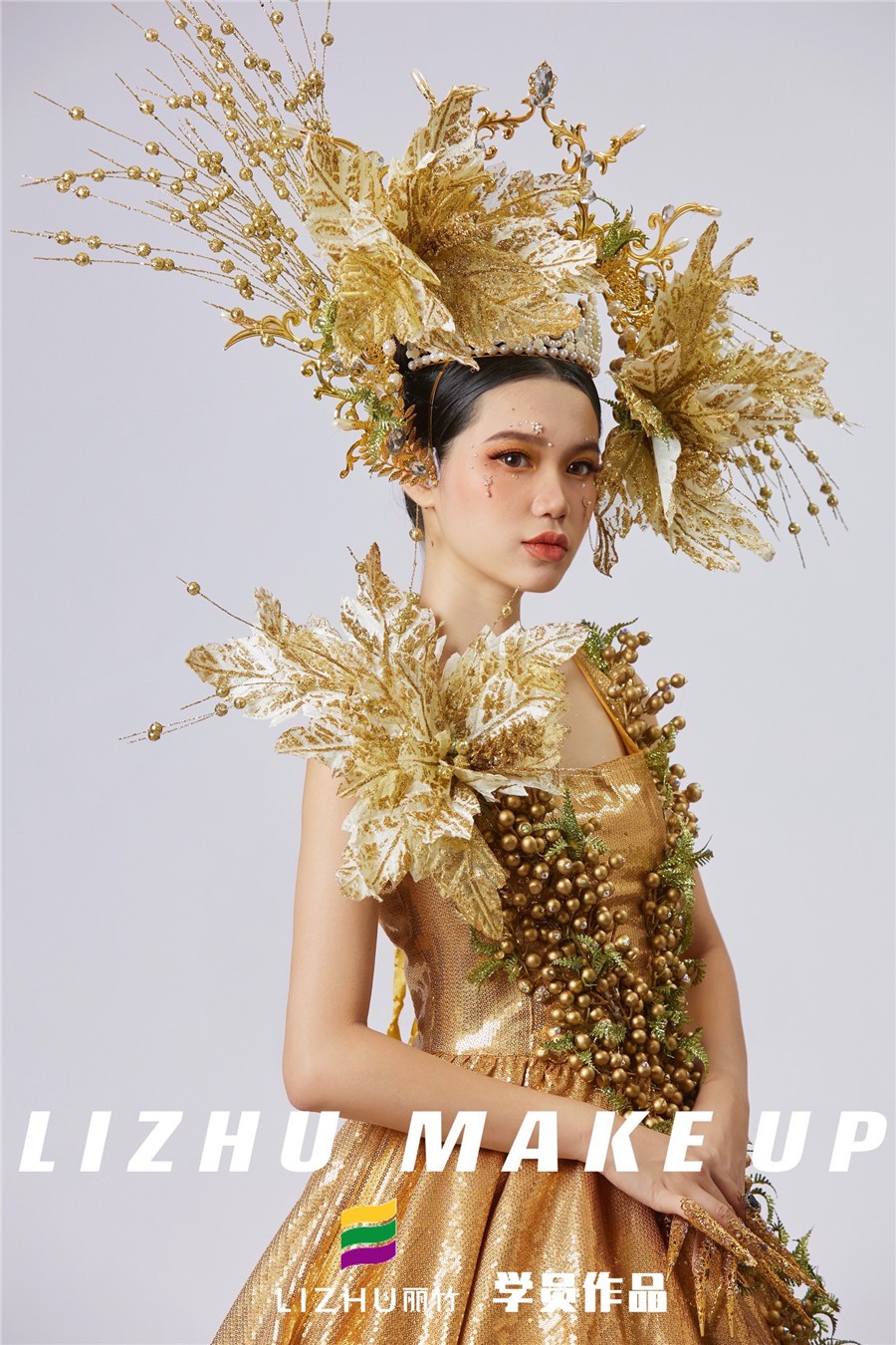 南寧化妝學校排行榜作品:金色創(chuàng)意妝妝容造型(二)