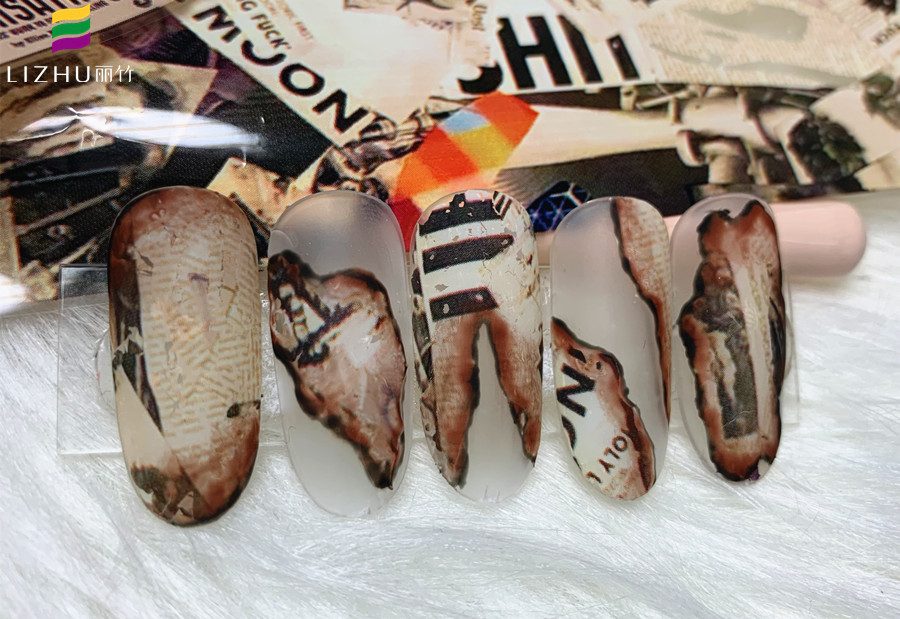 廣西美甲學校排行榜-麗竹美甲學校作品證明實力:舊報紙美甲(三)