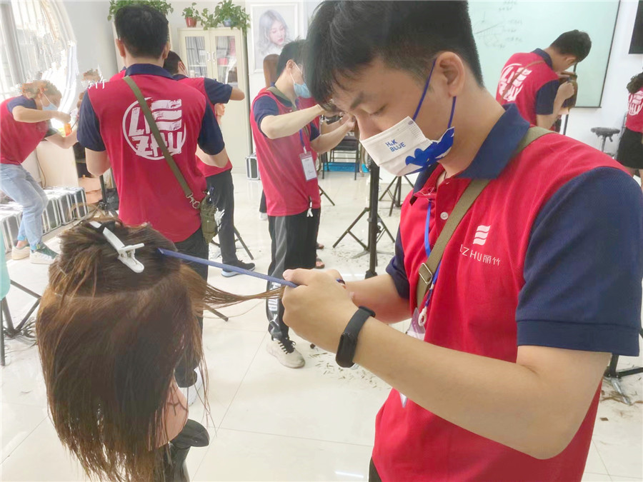 為了讓學員們可以更清楚,更詳細的看到剪發(fā)的手法,劉主任走到學員們的中間,重頭到尾再次演示了短發(fā)兩側(cè)層次修剪的手法。
