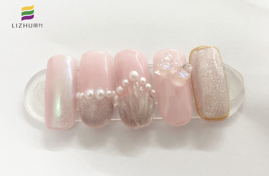 如果你舉辦的是浪漫的西式婚禮,那么這款以粉色作為主色調(diào),加上如銀河般的閃粉膠做襯托,將潔白無暇的珍珠以及裸粉透明色蝴蝶視頻點(diǎn)綴于甲片上新娘美甲,將會更加凸顯你的氣質(zhì)優(yōu)雅以及甜美氣息。