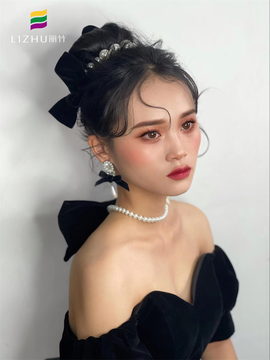 廣西美妝造型學校---黑色禮服造型:簡而不失其華的妝容,配上素雅的珍珠頭飾,身穿露肩黑色絲絨禮服,帶出輕松活潑的浪漫感。想在廣西南寧學化妝,但是不知道廣西化妝學校哪家學費便宜?廣西教彩妝造型哪家比較時尚?不如就趁現(xiàn)在麗竹學?;瘖y專業(yè)正在進行學費報名特惠活動,趕緊聯(lián)系我們報名吧!