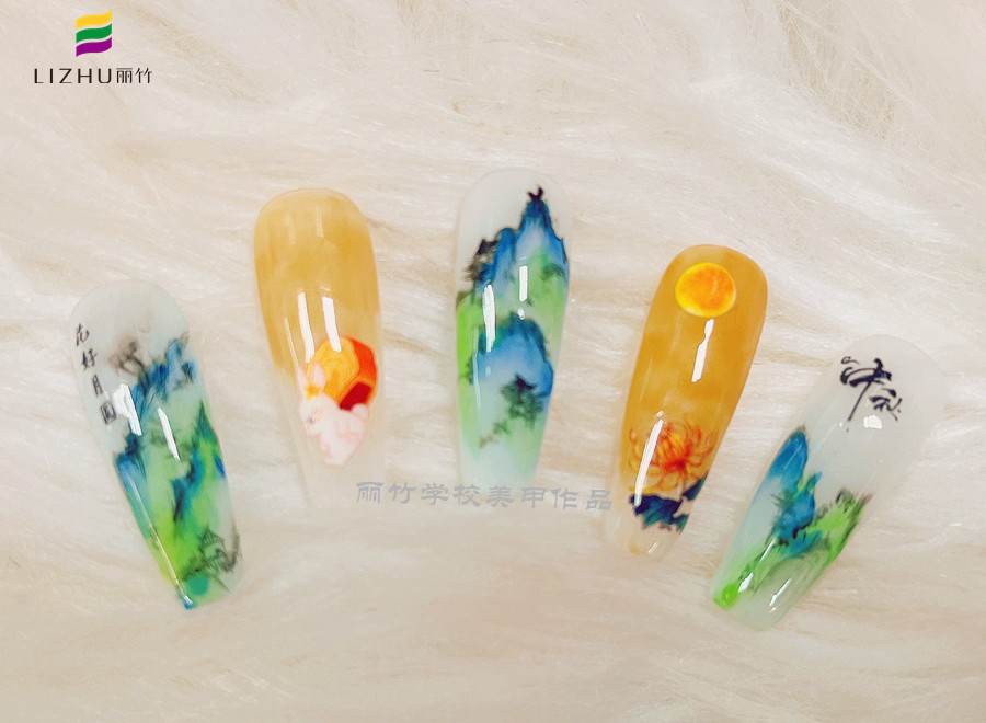南寧哪里可以學(xué)美甲?麗竹美甲學(xué)校用作品展示實(shí)力---水墨山水美甲