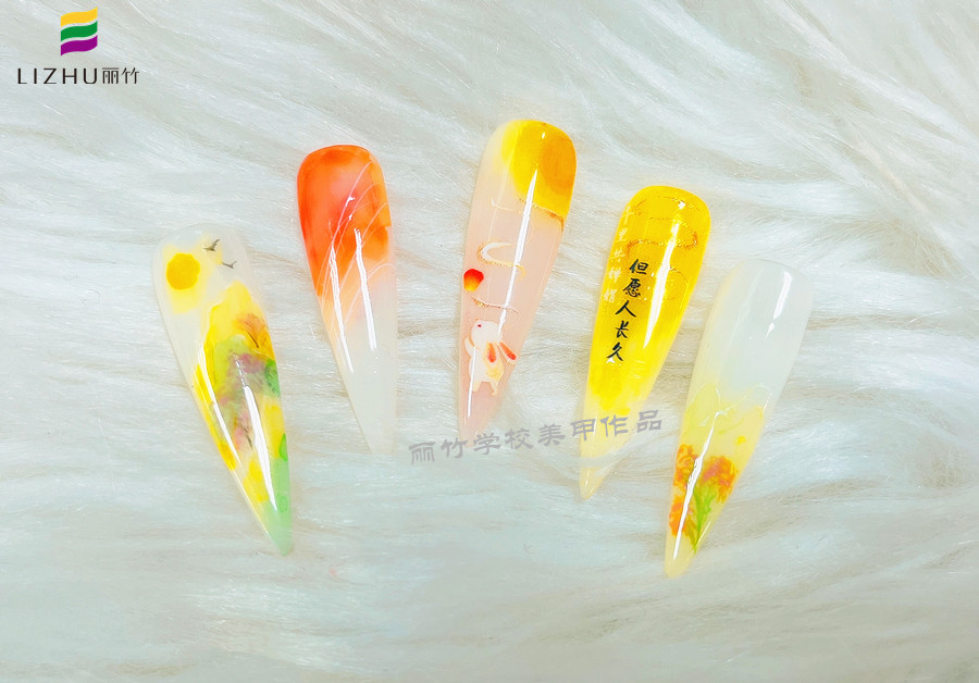 在南寧學(xué)美甲多久可以學(xué)會(huì)?麗竹美甲短期班學(xué)員用作品證明實(shí)力--中秋水墨暈染美甲
