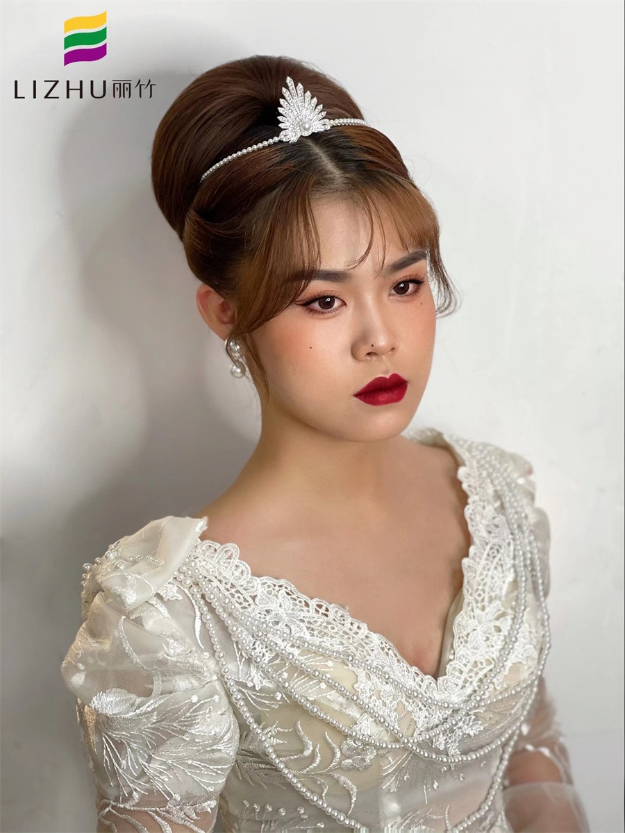 搭配優(yōu)雅的珍珠發(fā)飾點(diǎn)綴