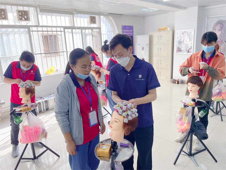 發(fā)根補燙技術的步驟,南寧燙發(fā)培訓學校課堂實訓