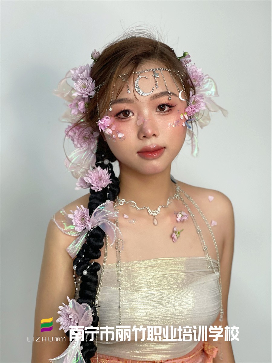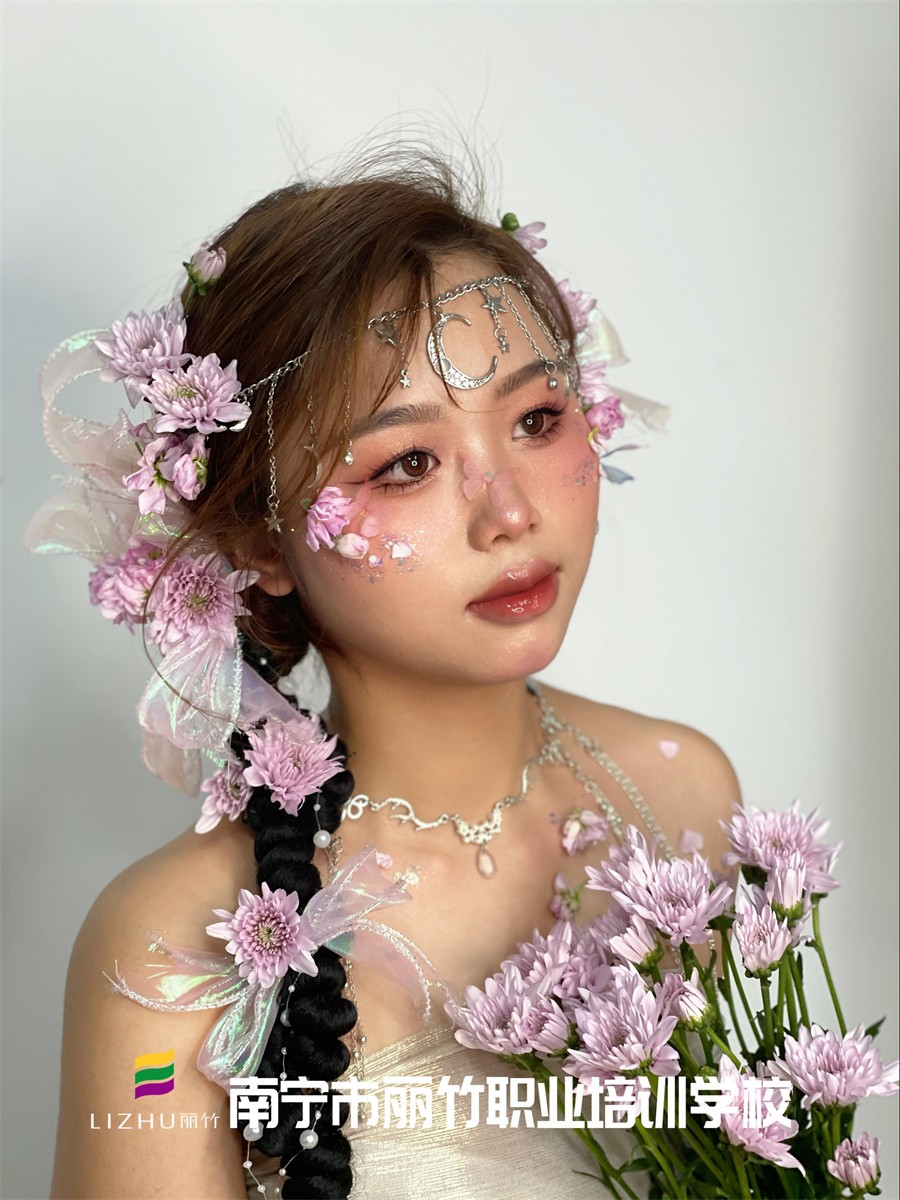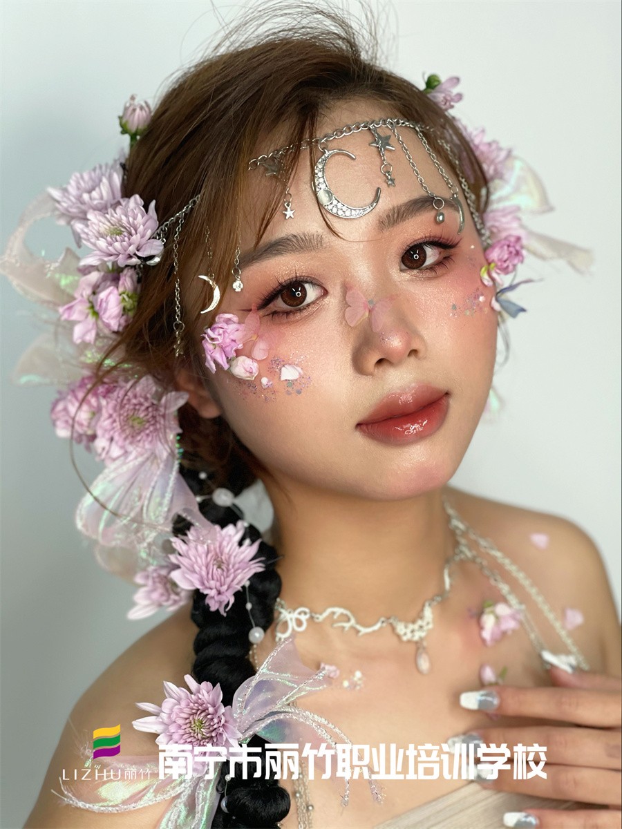 廣西化妝學(xué)校推薦:廣西彩妝網(wǎng)紅培訓(xùn)班作品---哈尼甜心公主造型!以花樣妝容為主,極具民族特色的服飾與頭飾更為整體造型增添了仙氣滿滿的氛圍感,營(yíng)造出了甜蜜的花樣公主形象。如果你對(duì)彩妝感興趣,建議你到廣西彩妝學(xué)習(xí)機(jī)構(gòu)或是專業(yè)廣西時(shí)尚造型彩妝學(xué)校去學(xué)習(xí)。