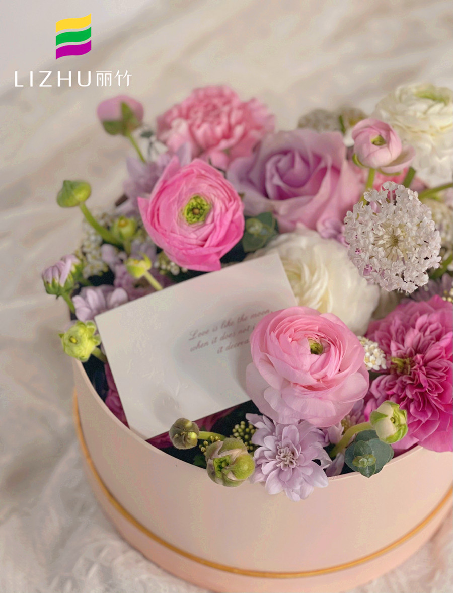 花盒挑選的花材和顏色并不局限于某一個(gè)范圍,它可以是多樣化的進(jìn)行搭配。隨意的造型設(shè)計(jì),加上自然的色彩搭配,整個(gè)花盒造型不僅顏色清新艷麗,更多了一份浪漫與溫暖。
