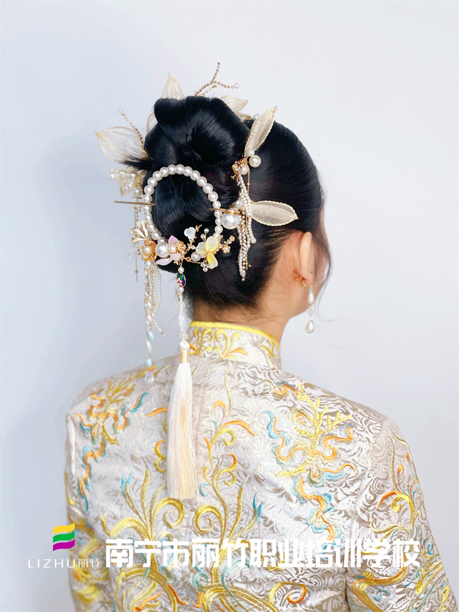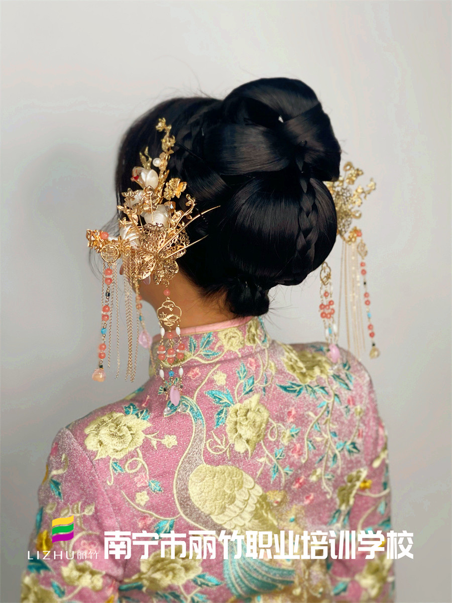 中式新娘發(fā)型,廣西化妝盤發(fā)學(xué)校演繹中式之美