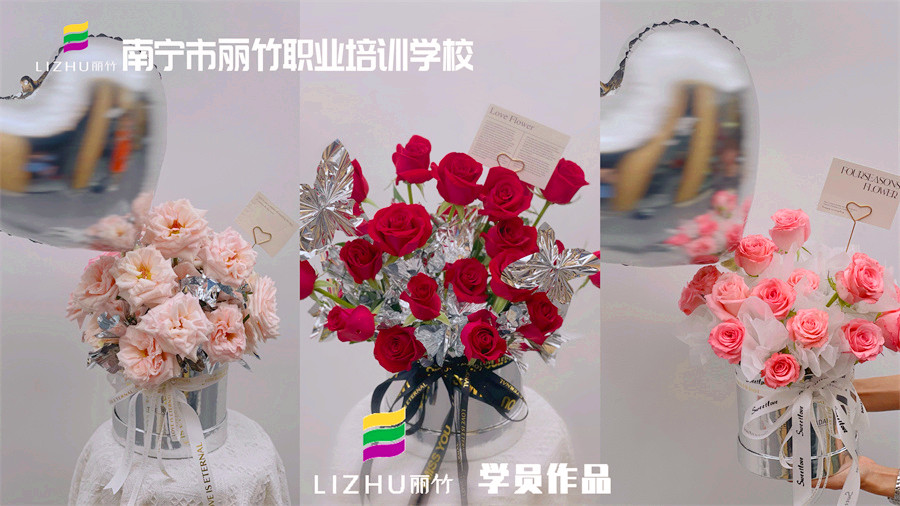 廣西學(xué)插花藝術(shù)、廣西插花實(shí)踐課堂:廣西花藝插花學(xué)校-麗竹花藝插花學(xué)校本期時(shí)尚花藝造型班學(xué)員作品---抱抱桶鮮花啦!養(yǎng)眼的配色,精致的桶裝配飾,不禁讓人眼前一亮。如果你對花藝培訓(xùn)感興趣,想知道廣西學(xué)花藝哪家時(shí)尚,現(xiàn)在就可以通過下面的方式關(guān)注麗竹學(xué)?;ㄋ噷I(yè),預(yù)約下一期花藝培訓(xùn)課程了。