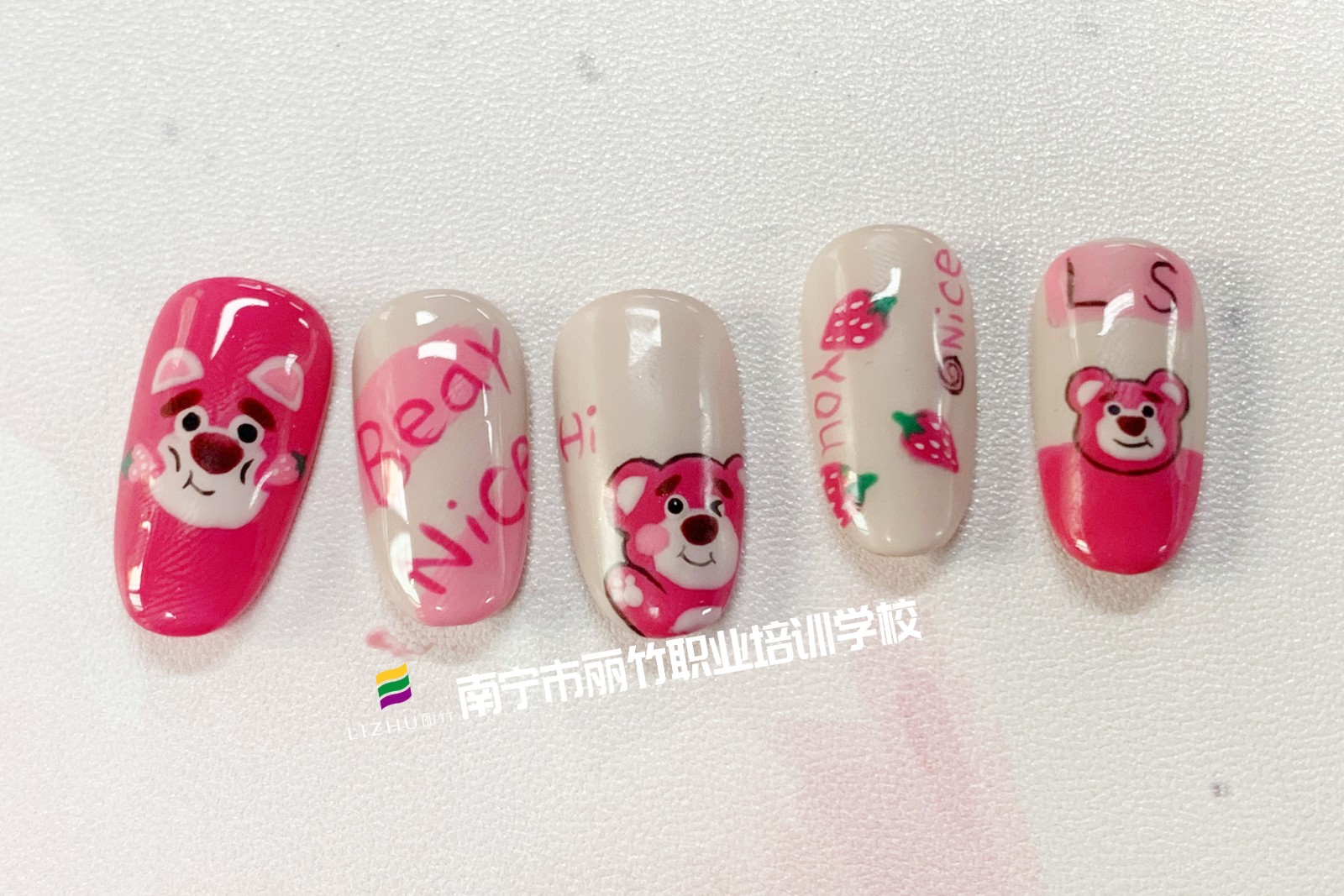 草莓熊卡通美甲