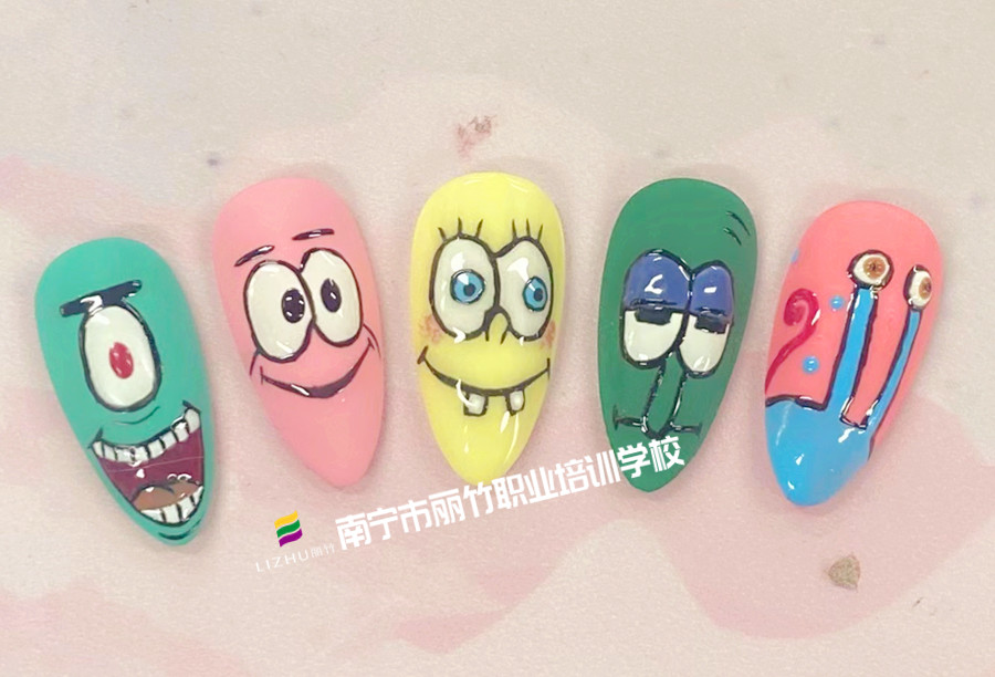 南寧學(xué)美甲款式、南寧培訓(xùn)美甲師:讓我們短暫忘掉世俗的煩惱,將你的童心未泯繪于“指”山,去創(chuàng)造屬于你的天馬行空!一起來看看南寧美甲學(xué)校的卡通系列美甲吧!每個(gè)人的童趣都不一樣,也許你的童趣更富色彩,如果是這樣,不妨也像南寧美甲造型培訓(xùn)-南寧美甲培訓(xùn)班的學(xué)員們一樣動(dòng)手將它們繪制成美甲作品吧!