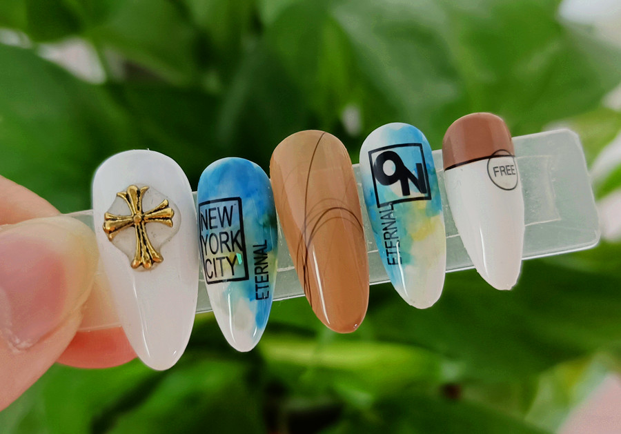 南寧學(xué)美甲款式:美甲是一門課時短,但可以在短期內(nèi)快速驗收學(xué)習(xí)成果的專業(yè)。2周美甲理論作為基礎(chǔ),進而將基礎(chǔ)運用到實踐美甲款式作品的繪制中,45天的課程即可讓你成為可以獨立繪制各種時尚類型的美甲作品。下面,來看看剛剛升班首 次挑戰(zhàn)獨立完成作品的-南寧美甲學(xué)校實訓(xùn)學(xué)員們繪制的作品吧!