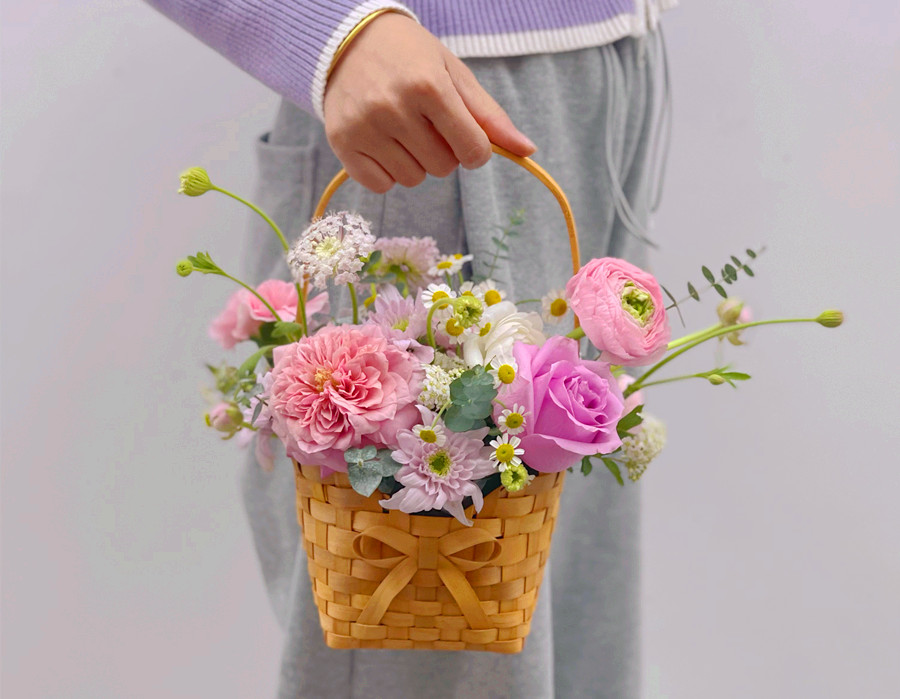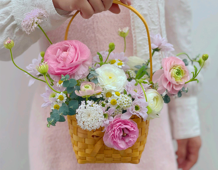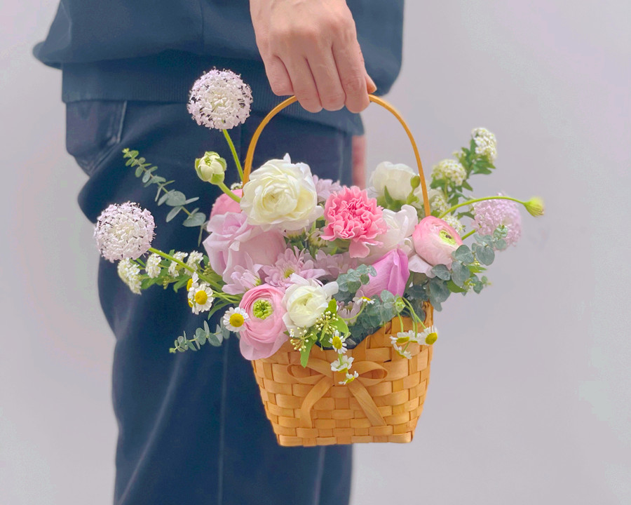 韓式手提花籃,南寧鮮花培訓作品