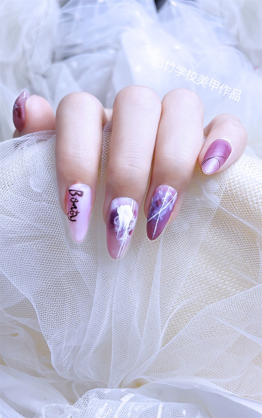 南寧學美甲技術-紫色系美甲-暈染彩繪美甲