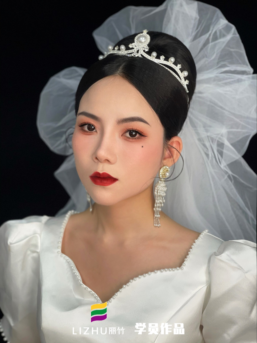 麗竹學校為期2個月的化妝培訓現(xiàn)在已經(jīng)迎來畢業(yè)季,在這段時間里,學員們由零起步開始學習,直到現(xiàn)在已經(jīng)可以獨立完成整個妝容造型的打造。下面,就一起來看看南寧彩妝造型學校學員寧婉茜的畢業(yè)作品---蓬蓬頭紗新娘造型吧!