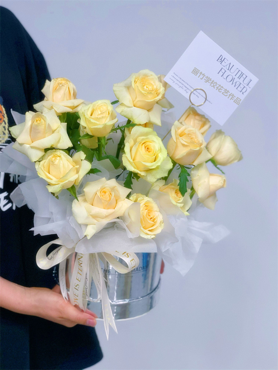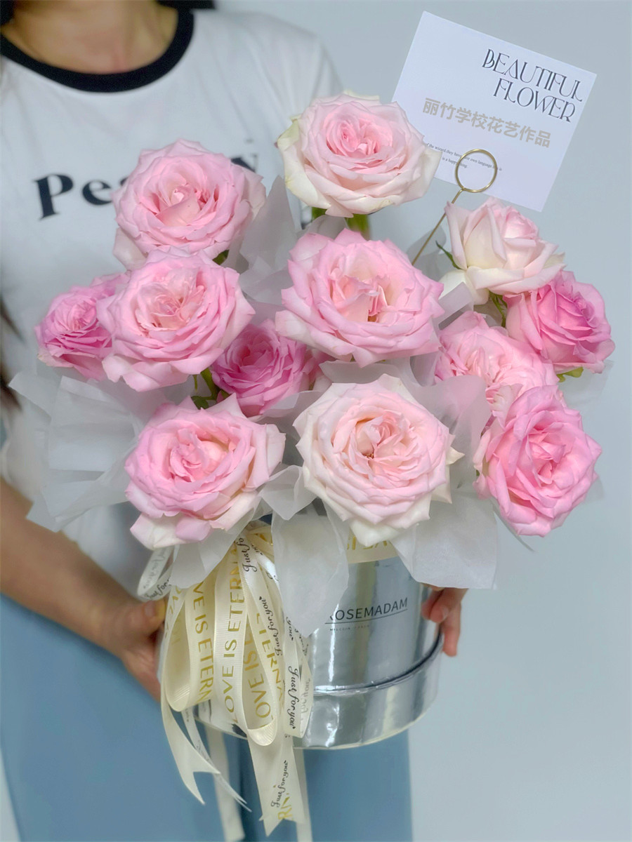 抱抱桶花束,南寧花藝零基礎(chǔ)培訓班作品欣賞