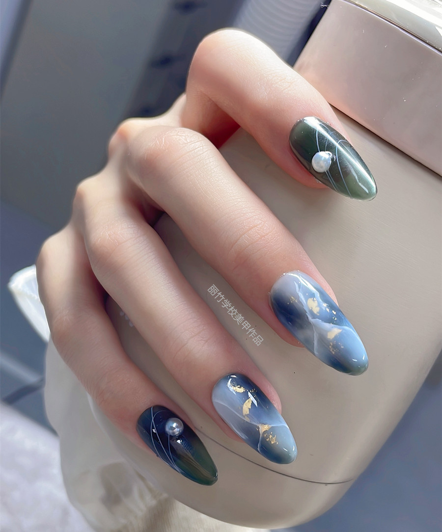 廣西美甲課堂實訓、廣西美甲技術進修分享:若隱若現(xiàn)的美感,更加能夠撩動人的心弦。而在眾多美甲款式中,暈染美甲就以其自然過渡,但又層層疊加的視覺感受到了很多人的喜愛。下面,廣西美甲師專業(yè)學校-麗竹美甲師學校就為大家分享一款由廣西培訓美甲師-廣西美甲培訓機構學員制作的水墨暈染美甲作品。