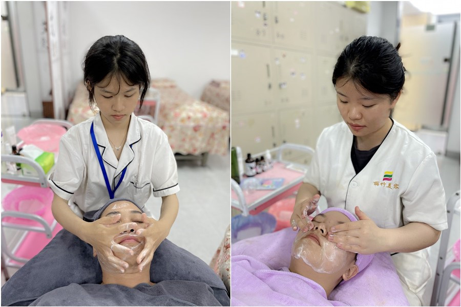南寧美容培訓面部護理---學員真人實操面部洗臉手法