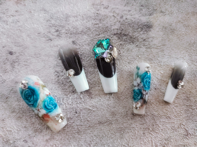 利用黑白進行作畫,常以水墨暈染居多,而這種繪畫方式同樣可以運用到美甲繪制當中。