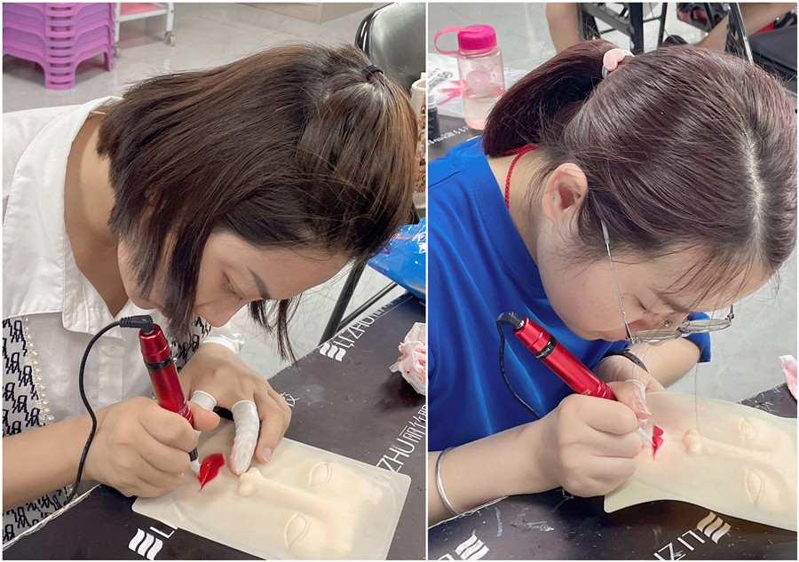 零基礎(chǔ)學(xué)紋繡在廣西、廣西紋唇教學(xué):經(jīng)過(guò)前面對(duì)眉眼唇的理論以及紙上練習(xí),廣西眉眼唇學(xué)校-麗竹眉眼唇學(xué)校的同學(xué)們現(xiàn)在進(jìn)入到了仿皮紋唇練習(xí)。廣西紋繡培訓(xùn)-麗竹國(guó)際紋繡大師班本期課程已經(jīng)進(jìn)入尾聲,同學(xué)們也即將結(jié)束在仿皮上進(jìn)行眉眼唇的練習(xí),讓我們共同期待同學(xué)們接下來(lái)進(jìn)入到紋繡真人實(shí)操的表現(xiàn)吧!