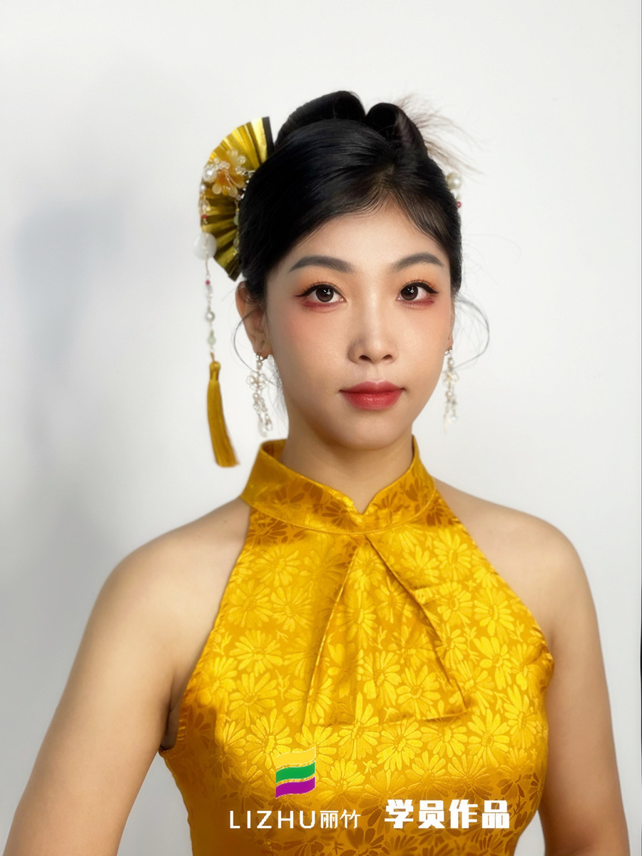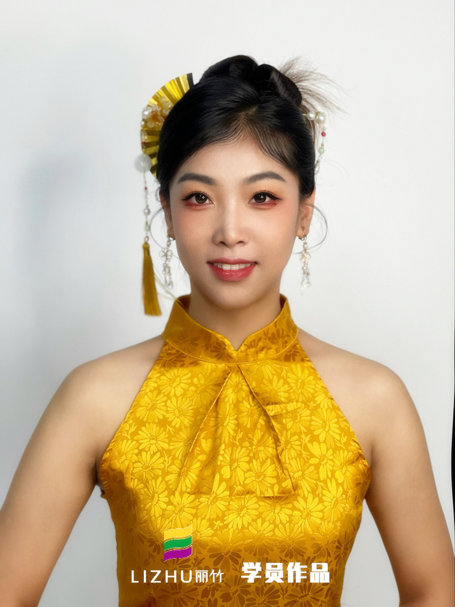 南寧新娘造型學習、南寧化妝彩妝培訓:當初以零基礎學化妝的小白身份來到南寧化妝學校-麗竹化妝學校學習化妝的同學們,現(xiàn)在已經能夠獨立完成各種妝容啦!現(xiàn)在就來看看麗竹化妝培訓班學員潘萍美的作品---新中式造型。