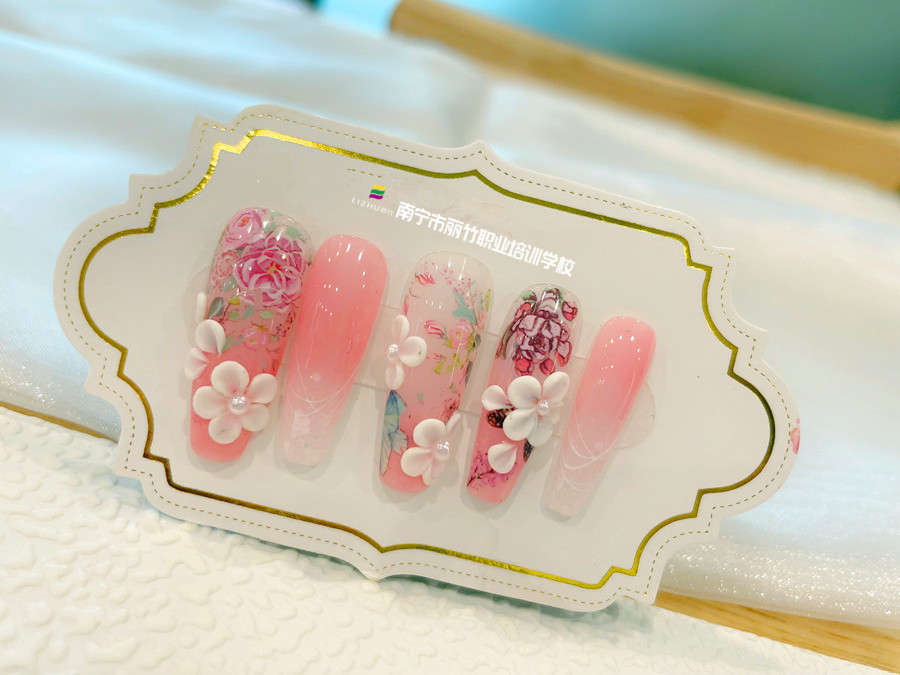 零基礎(chǔ)美甲教學(xué)、南寧培訓(xùn)美甲職業(yè):當(dāng)彩繪碰上雕花,是比出勝負(fù)誰(shuí)更勝一籌?還是相互陪襯碰撞新的火花?南寧美甲款式造型班的同學(xué)們顯然已經(jīng)用他們的作品給出了答案。