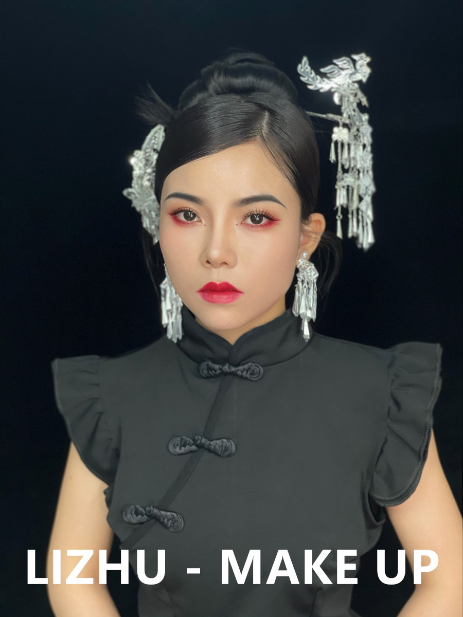 南寧化妝彩妝造型培訓(xùn)、南寧學(xué)新娘寫真作品:國(guó)風(fēng)造型:少數(shù)風(fēng)情的銀質(zhì)珠釵發(fā)飾,俏皮簡(jiǎn)約的高聳盤發(fā)造型,玫紅眼影與唇妝的風(fēng)情演繹,搭配改良版中式黑色旗袍,好一個(gè)優(yōu)雅韻味的國(guó)風(fēng)造型。無(wú)論你是想為自己學(xué)化妝,還是想以此謀生,都?xì)g迎先通過下面的方式關(guān)注南寧美妝學(xué)校-南寧化妝師培訓(xùn)班獲取到校參觀,試聽的名額,滿意之后在報(bào)名!