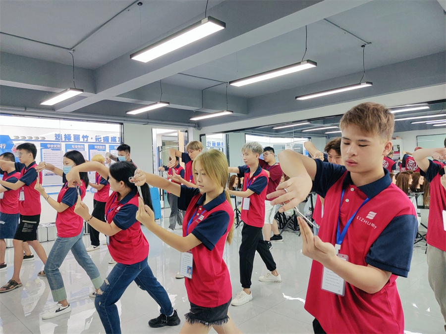南寧學(xué)美發(fā)造型,美發(fā)燙染技術(shù)班學(xué)員練習(xí)上杠
