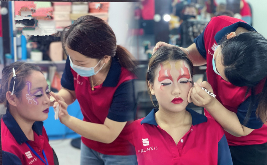 廣西化妝進修班同學正在進行創(chuàng)意妝容打造