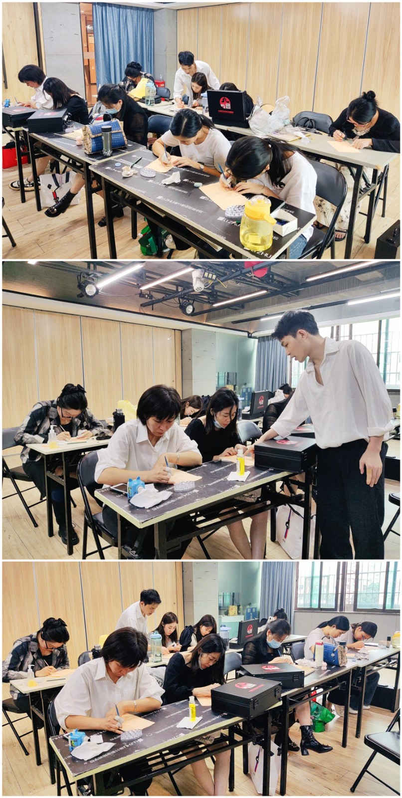 為期7天的《紋繡造型全能大師班》的課程已經(jīng)過(guò)半,同學(xué)們也在學(xué)習(xí)了色料的知識(shí)后,開始在仿皮上進(jìn)行眉眼唇的填色練習(xí),讓我們共同等待同學(xué)們進(jìn)行真人實(shí)操的練習(xí)吧!