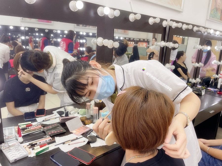 美容師形象要求、美容師儀容儀表的規(guī)范要求:想要成為一名合格的美容師,除了要有專(zhuān)業(yè)的技能外,對(duì)于美容師的面部妝容也有一定的標(biāo)準(zhǔn)。而在南寧美容師培訓(xùn)學(xué)校(麗竹美容師培訓(xùn))的課堂上,同學(xué)們就根據(jù)老師給出的美容師妝容形象標(biāo)準(zhǔn)進(jìn)行手法練習(xí),和我們一起去看看吧!