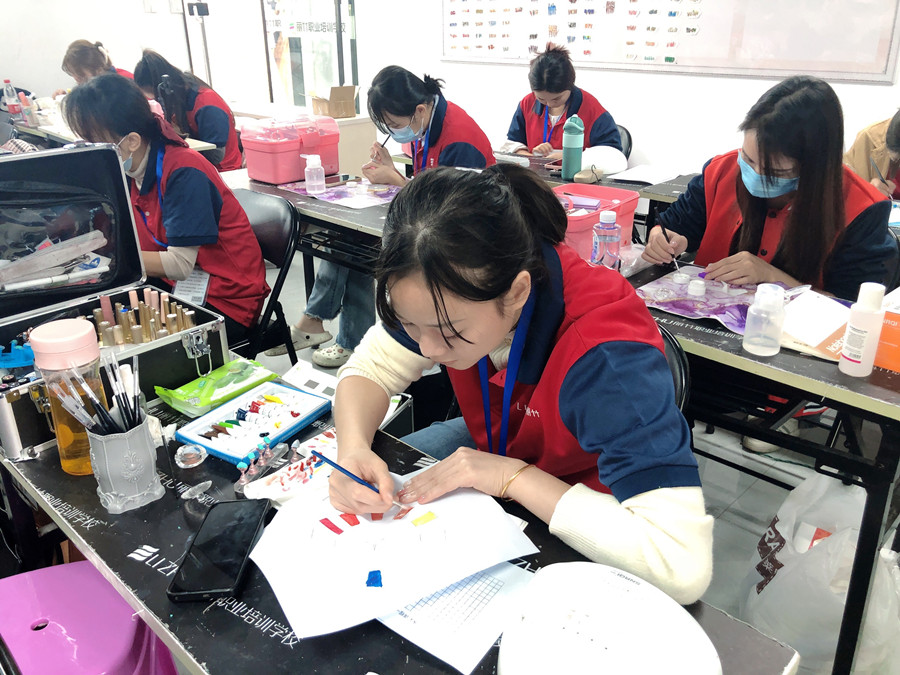 廣西美甲師、廣西美甲學(xué)習(xí):今天,廣西美甲職業(yè)技術(shù)學(xué)校的老師正在教授同學(xué)們常用的美甲色彩搭配方法,感興趣的你趕緊和廣西美甲進(jìn)修班的同學(xué)們一起跟著老師學(xué)習(xí)廣西美甲專業(yè)課程吧!