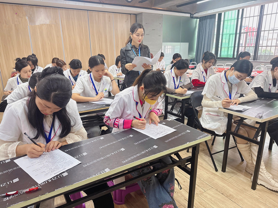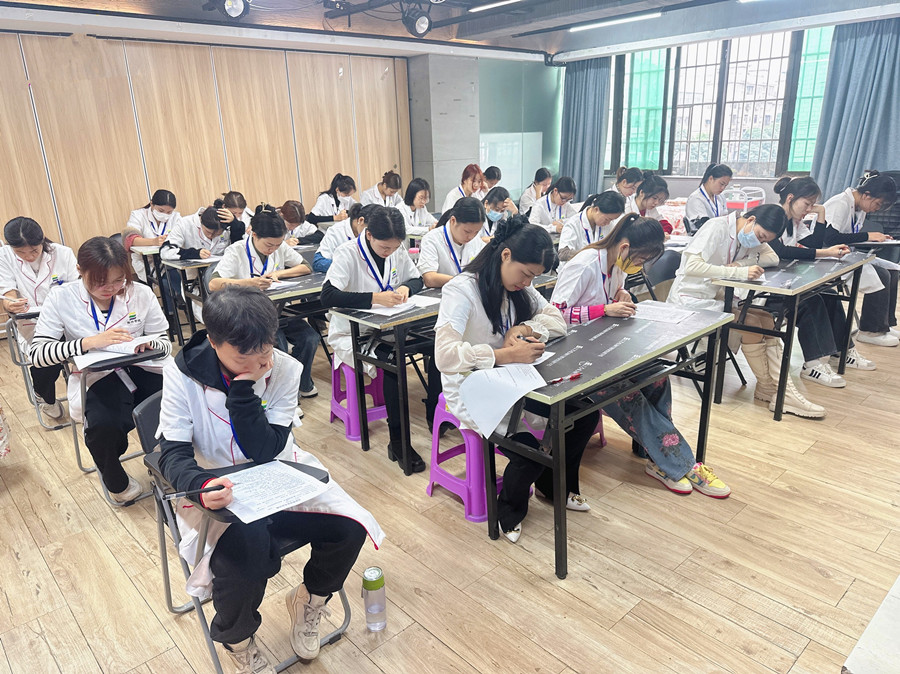 廣西美容師課堂、廣西美容理論:為了檢測同學們的學習成果,廣西美容師專業(yè)學校-麗竹美容培訓于近日舉行了階段性的面部護理考核(理論+實操)。希望廣西美容面部護理培訓的同學們可以在考核中歷練,在歷練中突破。如果你想在廣西學美容職業(yè),那請相自己的實力。