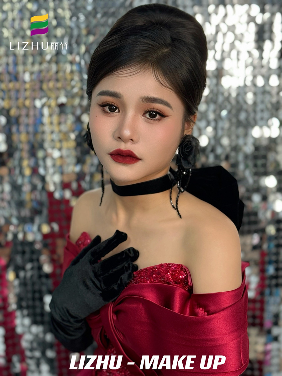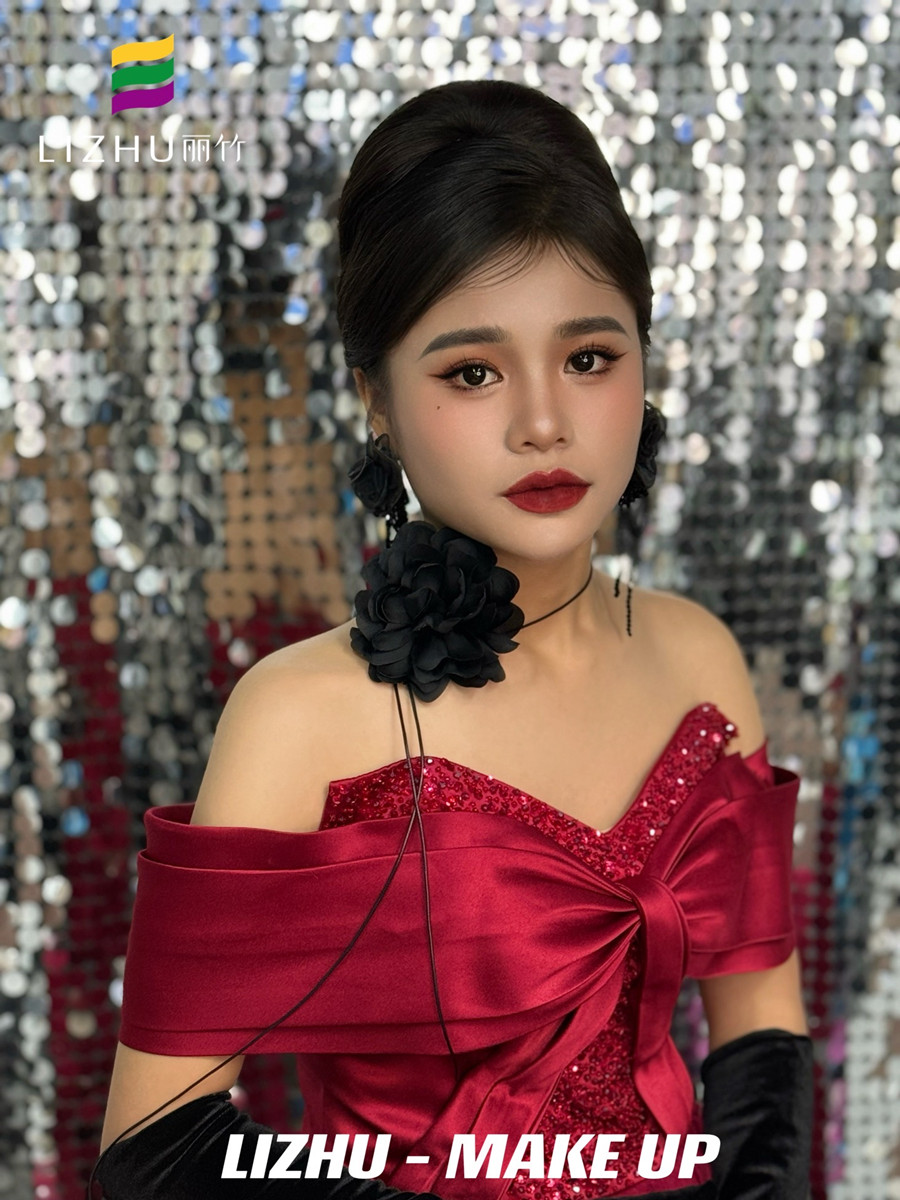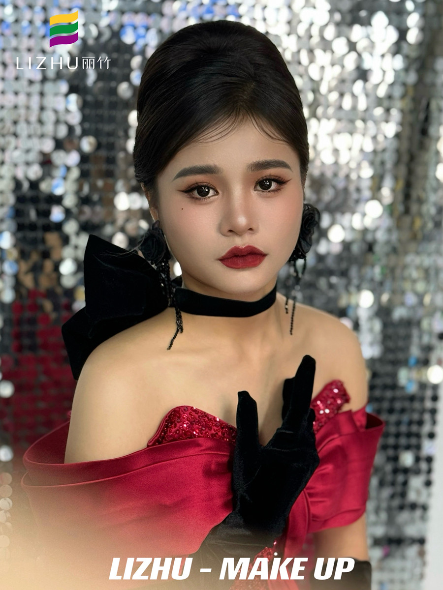 南寧化妝美業(yè)學(xué)習(xí)、南寧化妝彩妝(麗竹化妝彩妝培訓(xùn))作品---復(fù)古年會(huì)造型:明媚動(dòng)人氣質(zhì)妝容,簡(jiǎn)約大氣復(fù)古赫本發(fā)型,佩戴夸張黑色花朵配飾,身穿酒紅色亮片抹胸禮服,仿佛置身于年會(huì)中的紅玫瑰。想知道南寧化妝學(xué)校哪家時(shí)尚?或是想知道南寧學(xué)化妝學(xué)費(fèi)便宜的是哪家?歡迎大家趁著麗竹學(xué)校正在進(jìn)行招生優(yōu)惠活動(dòng)之際,關(guān)注麗竹學(xué)校彩妝專業(yè),...