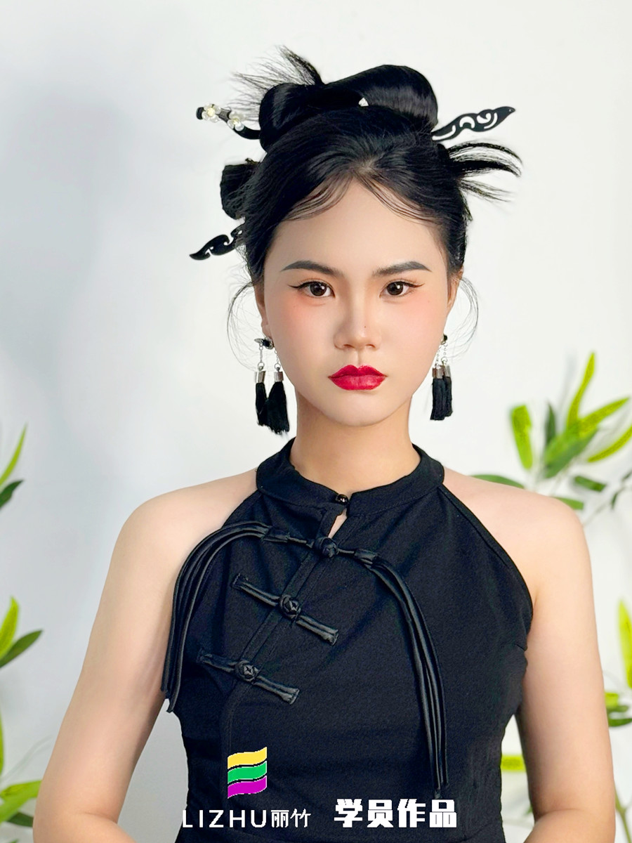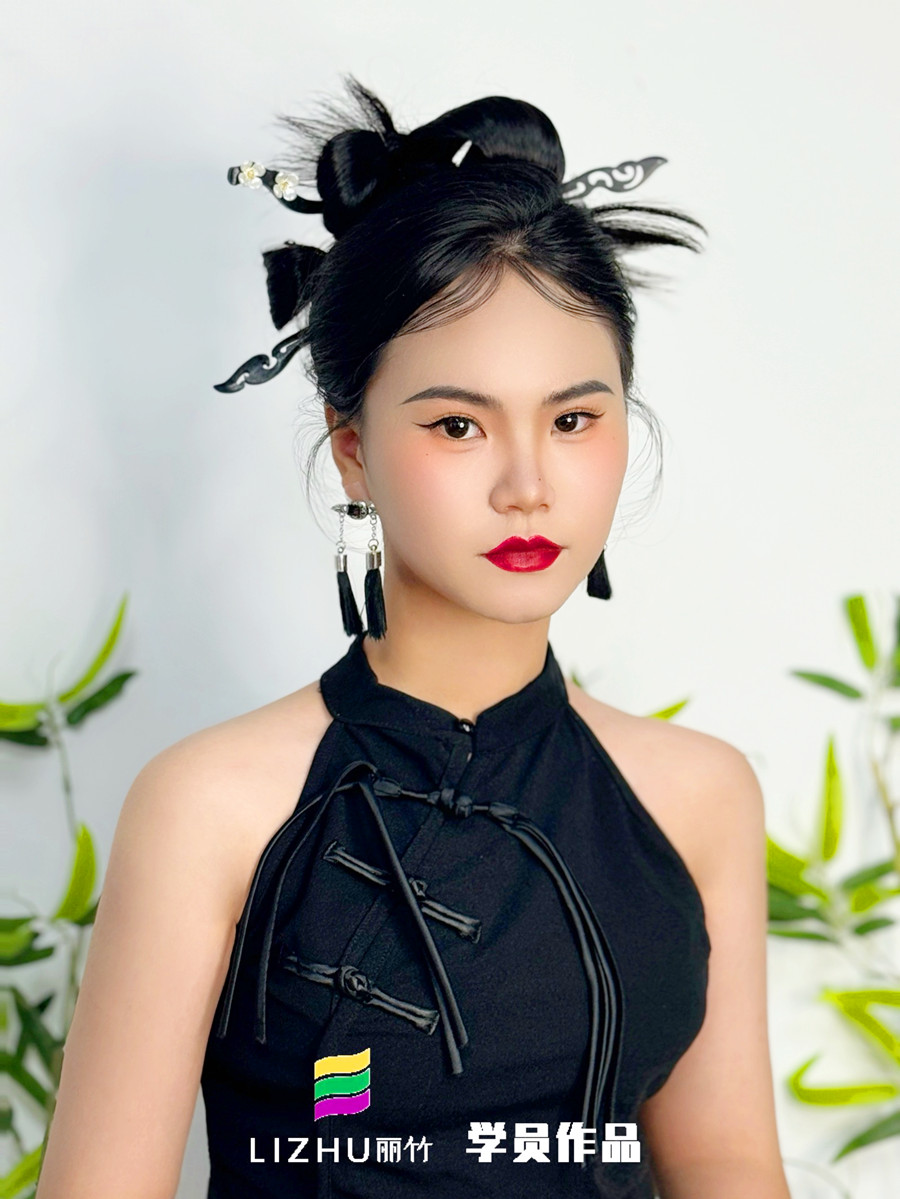 零基礎(chǔ)彩妝教學 南寧影樓彩妝培訓學員(梁雅露)作品---新中式造型。如果你本就對化妝感興趣,或是想提升技術(shù),建議你可以趁著南寧化妝彩妝培訓機構(gòu)-南寧彩妝寫真學校(麗竹彩妝寫真學校)真在進行招生優(yōu)惠活動,聯(lián)系我們報名吧!