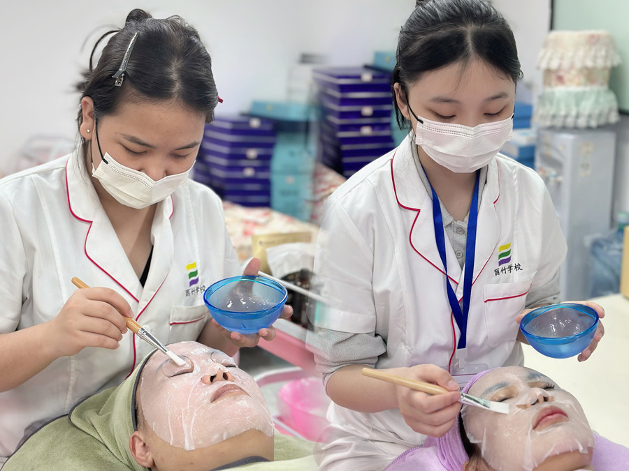 南寧皮膚管理師日常,同學們進行面部敷膜補水練習
