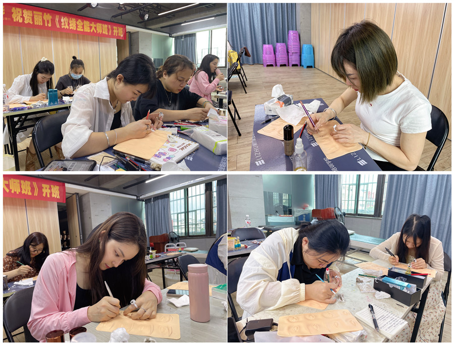 南寧紋繡學(xué)校排行榜、南寧學(xué)眉眼唇:南寧眉眼唇造型學(xué)校(麗竹紋繡全 能大師班)的課程已經(jīng)進(jìn)入到第四天的學(xué)習(xí)。有了前面的理論自己在仿皮操作上積累的手法,在接下來的南寧紋繡課堂上,同學(xué)們將正式進(jìn)入到真人實(shí)操的練習(xí)。